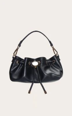 PrettyLittleThing Black Soft PU Drawstring Mini Bag – Sleek Faux Leather Compact Shoulder Bag