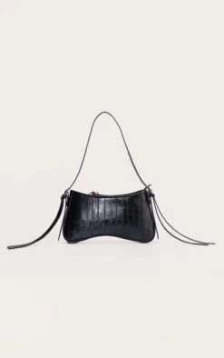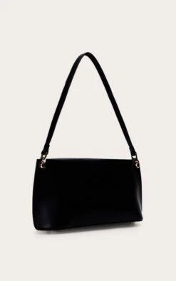 PrettyLittleThing Black Slim Curved Shoulder Bag – Minimalist Day-to-Night Underarm Handbag
