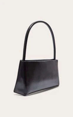 PrettyLittleThing Black Patent Elongated Handle Shoulder Bag – Structured Minimalist Handbag
