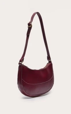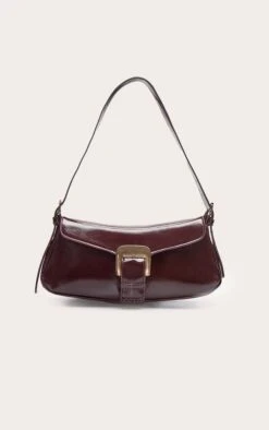 PrettyLittleThing Burgundy Crinkle PU Buckle Strap Shoulder Bag – Compact Faux Leather Purse
