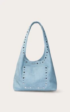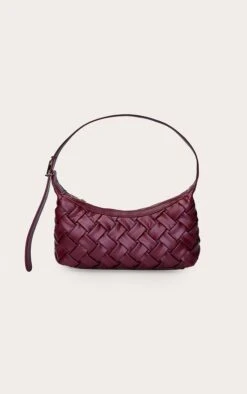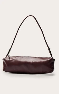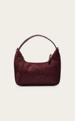 PrettyLittleThing Plum Crinkle PU Silver Studded Shoulder Bag – Glossy Faux Leather Handbag