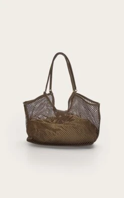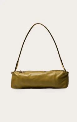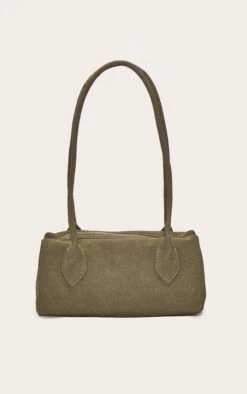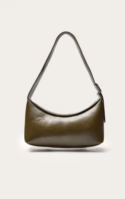 PrettyLittleThing Olive Green Soft PU Gold Hardware Shoulder Bag – Structured Faux Leather Day Bag