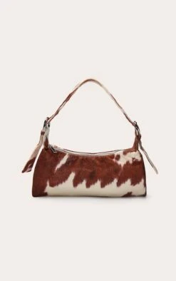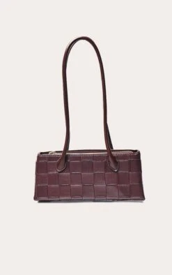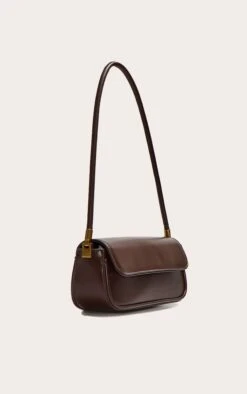 PrettyLittleThing Chocolate PU Skinny Elongated Shoulder Bag – Chic Minimalist Brown Handbag