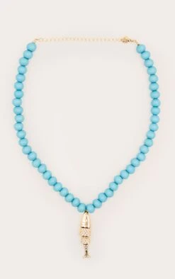 PrettyLittleThing Burgundy Beaded Necklace with Brushed Gold Textured Oversized Starfish Pendant
