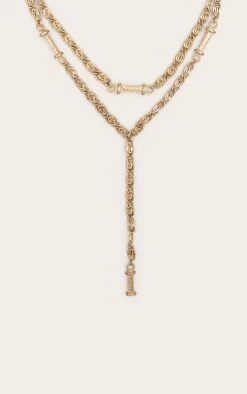 Gold Heavy Chain Layered Lariat Necklace – Multi-Strand Recycled Metal Statement Piece