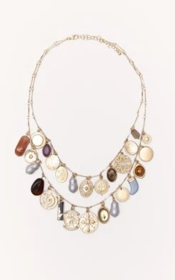 PrettyLittleThing Gold Layered Multi-Pendant Charm Necklace – Coin, Padlock & Pearl Detail