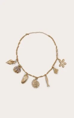 PrettyLittleThing Gold Multi Shell Pendant Layered Chain Necklace – Coastal Boho Accessory