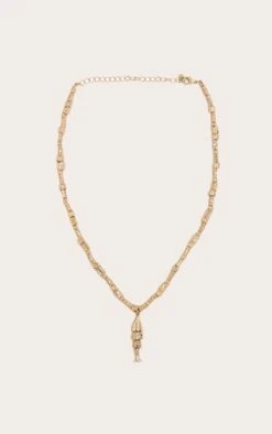 Prettylittlething Gold Multi-Fish Charm Detail Necklace – Dainty Sea-Inspired Gold Chain