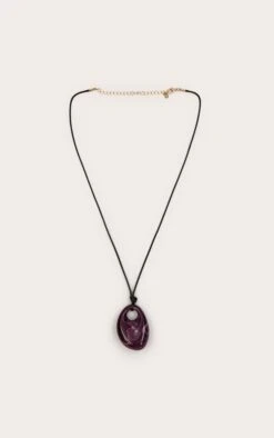 PrettyLittleThing Plum Resin Swirl Oval Pendant Necklace – Black Cord Minimalist Jewelry