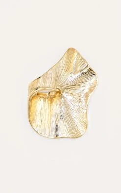 PrettyLittleThing Gold Molten Textured Hammered Multi-Pack Rings – 3-Piece Organic Stacking Set
