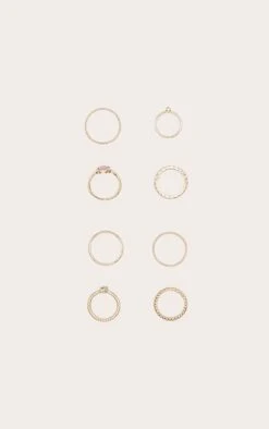 PrettyLittleThing Gold Assorted Pack of 8 Dainty Stacking Rings – Minimalist Recycled Metal Set