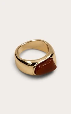 PrettyLittleThing Gold Textured Band with Burnt Orange Resin – Bold Statement Cocktail Ring
