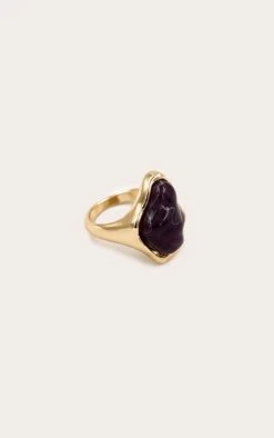 PrettyLittleThing Gold Textured Band Purple Marble Ring – Irregular Stone Statement Ring