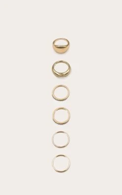 Prettylittlething Gold Simple Curved & Diamante 6-Piece Ring Pack – Stackable Jewelry Set