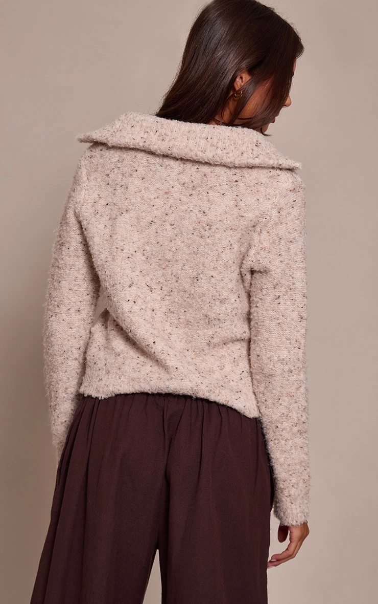 Stay warm in the beige marl zip through cardigan. Made from a beige marl knit material, it features a zip fastening, long sleeves, and a cosy fit. Style with slip on mule heels, or a pair of sneakers and wide leg pants and gold earrings for a fool proof finish.