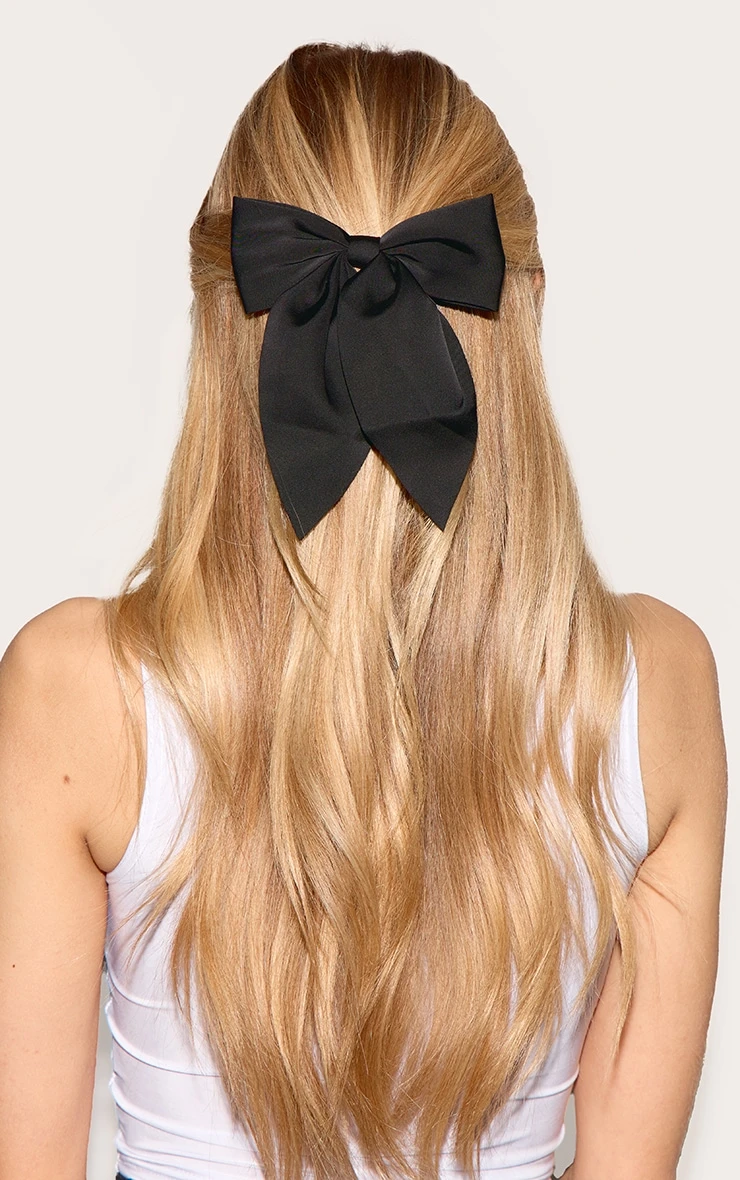 Give your new season wardrobe the luxe upgrade it deserves with this black large bow hair clip, we’re seriously in love. Made using a black material with a large bow detail, get ready for the best hair day. Pair this bow clip with your fave outfit of the day for a look everyone will want.