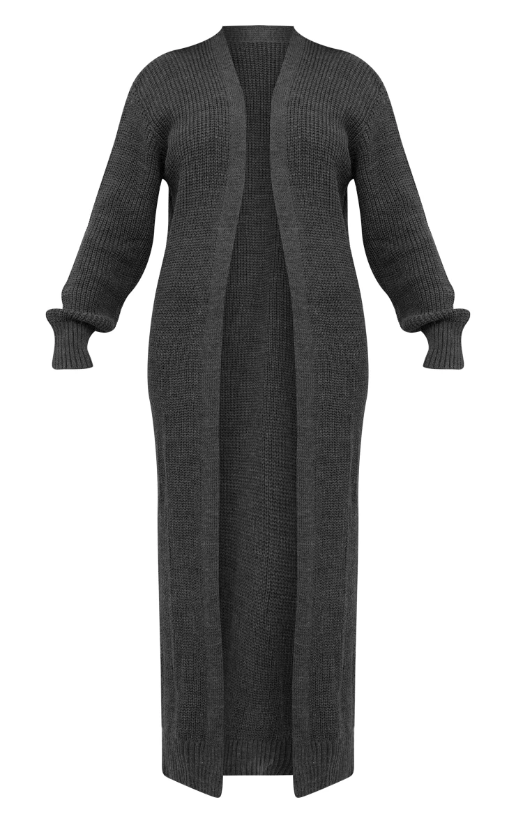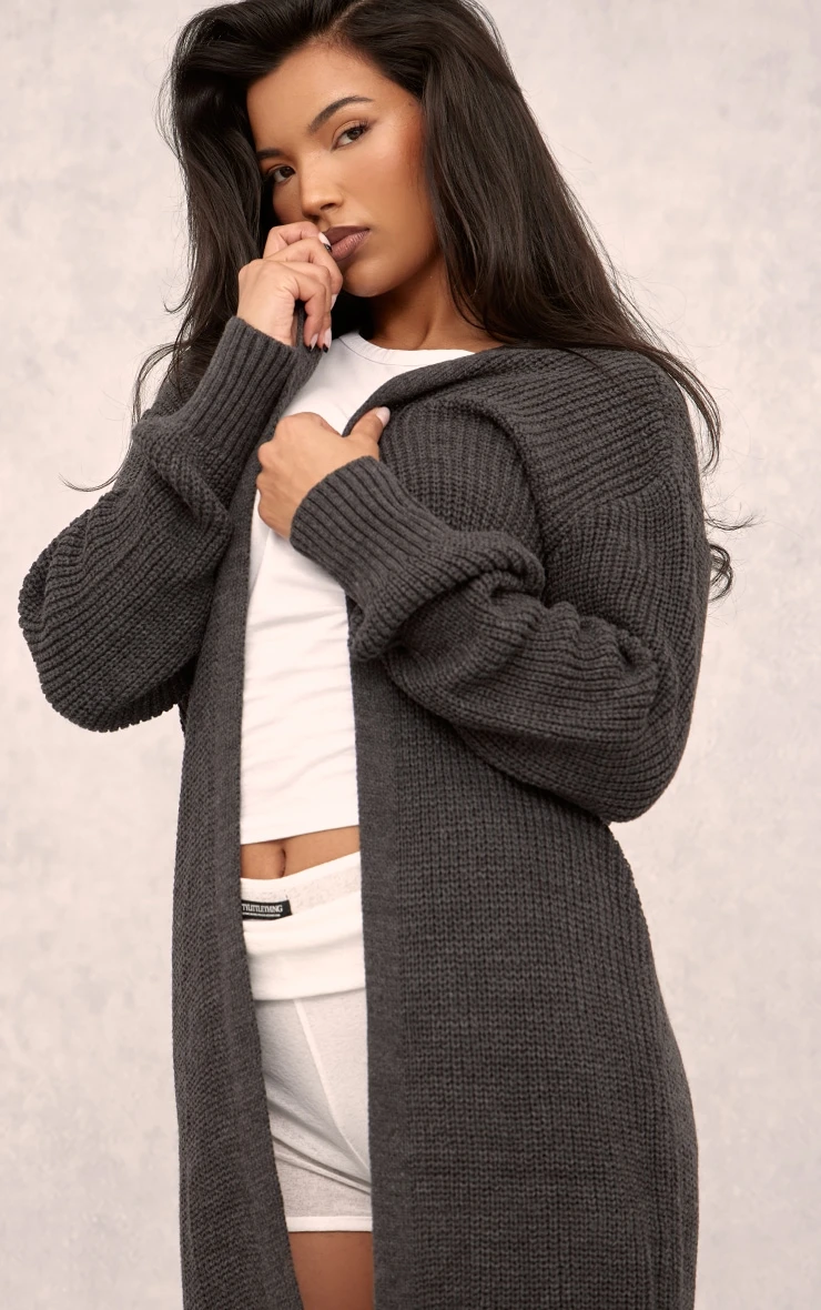 Featuring a dark charcoal soft knit, a longline style and a comfy loose fit, this maxi cardigan is perfect for adding some extra comfort to your off-duty wardrobe. Style it up with a slinky Two Piece Set and heeled boots for a simple but chic look.