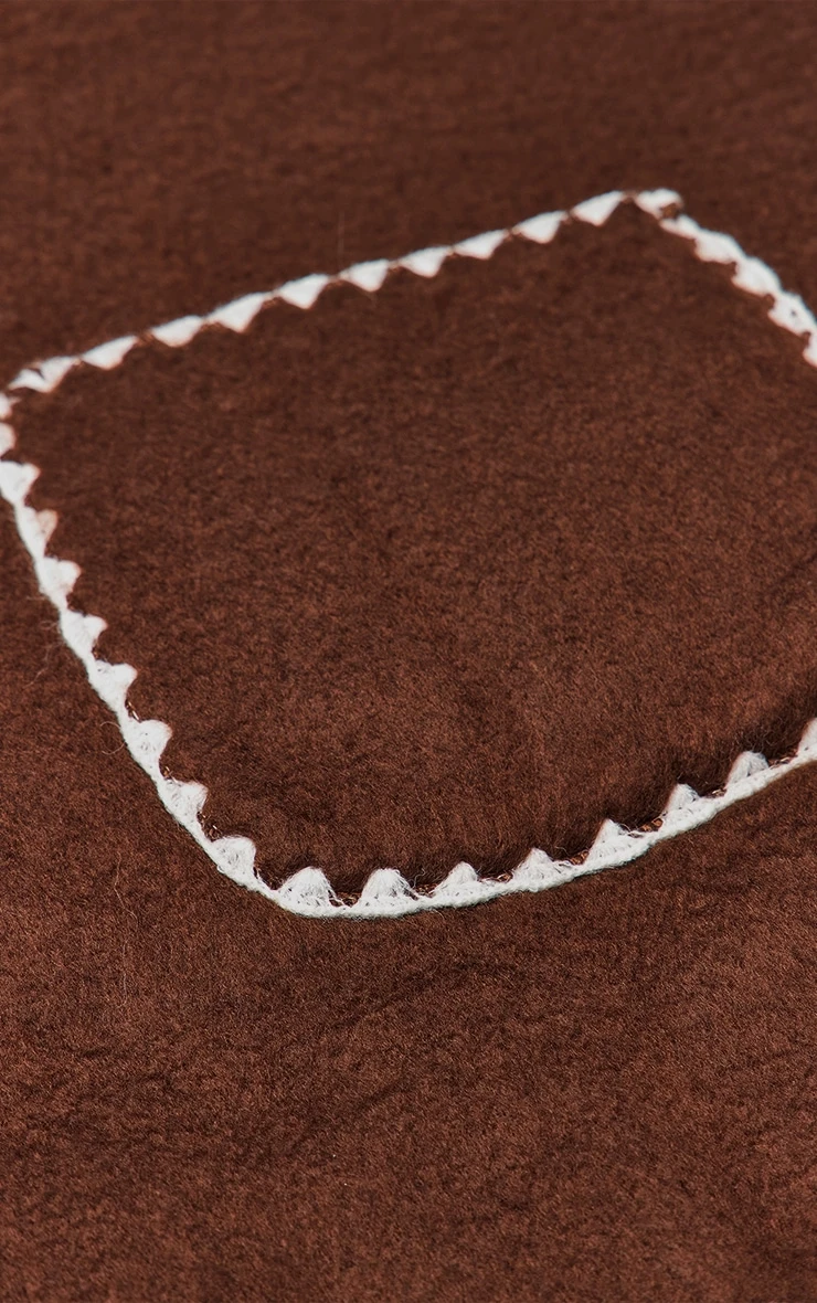 Layer up with the chocolate blanket stitch contrast pocketed scarf. Made from a soft chocolate fabric, it features blanket stitching and contrast pocket details for extra style and functionality. Perfect for cosy layering during cooler seasons, this scarf adds a chic edge. Style with chunky boots and your winter coat for effortless polish.