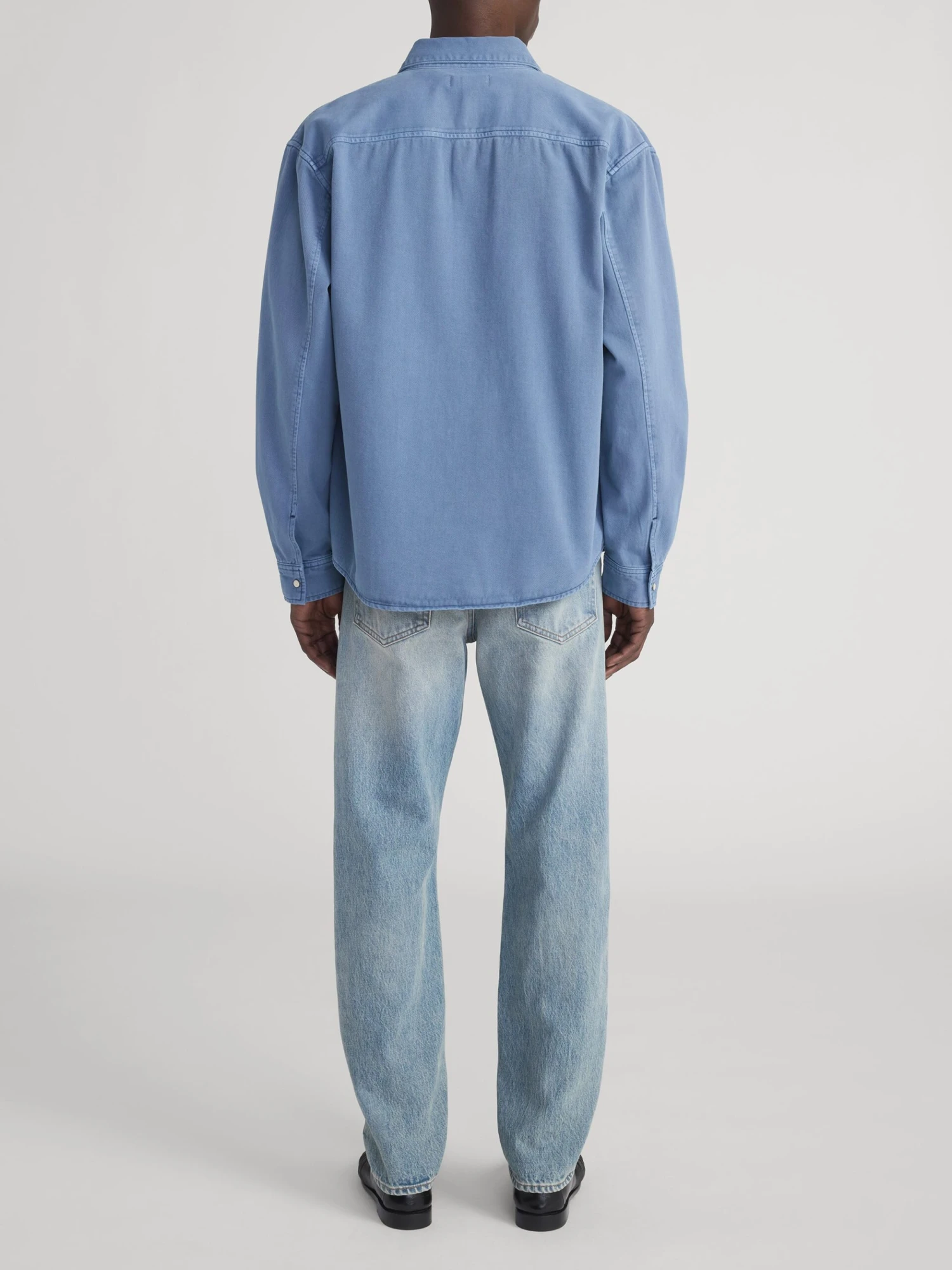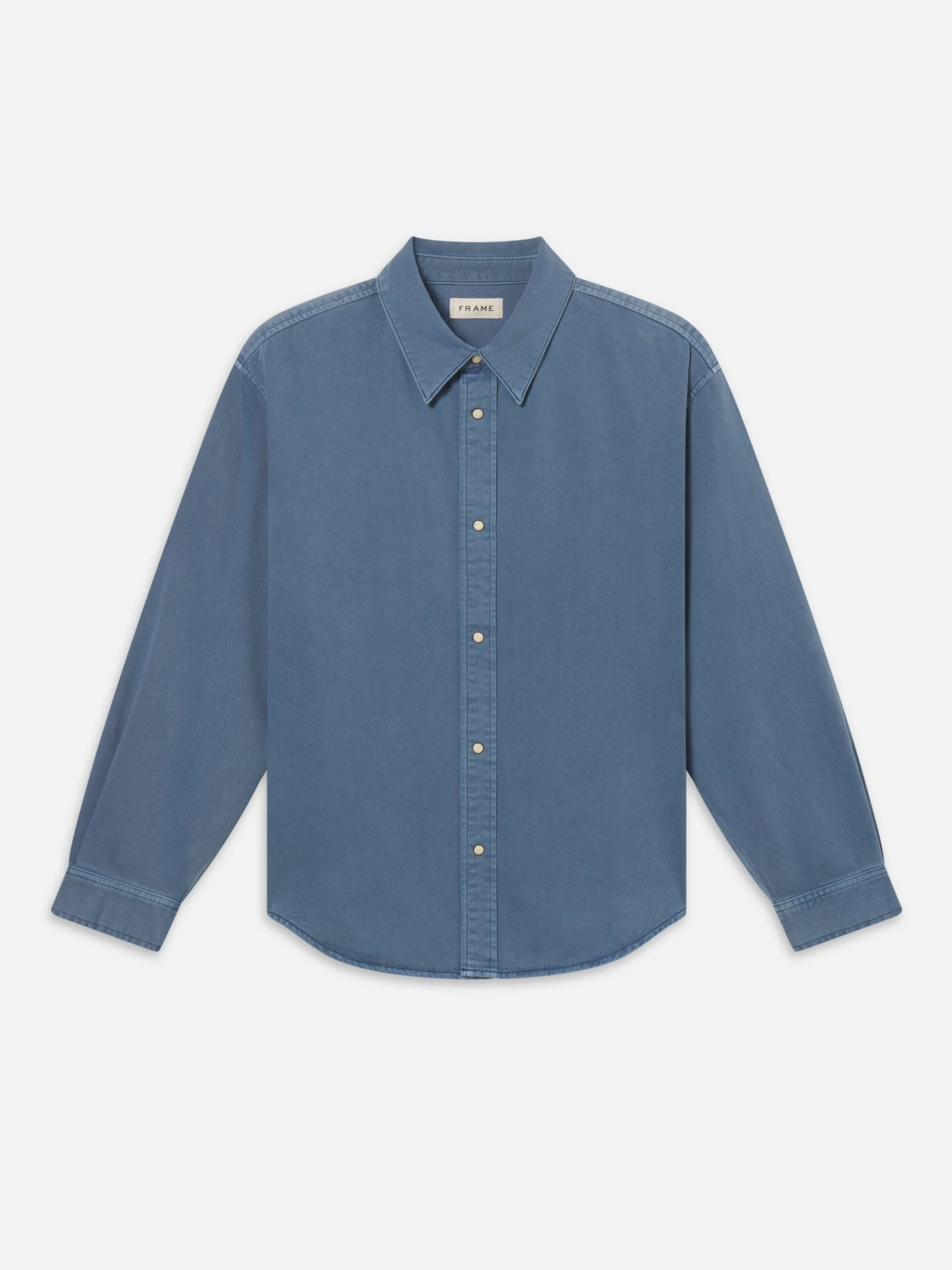 Visual Details: Rendered in a sophisticated Slate Blue, this shirt features a premium matte cotton finish. The pocket-free front creates a streamlined, modern aesthetic that emphasizes the crisp cuffs and sharp pointed collar, ensuring a sleek silhouette under a blazer or worn alone.