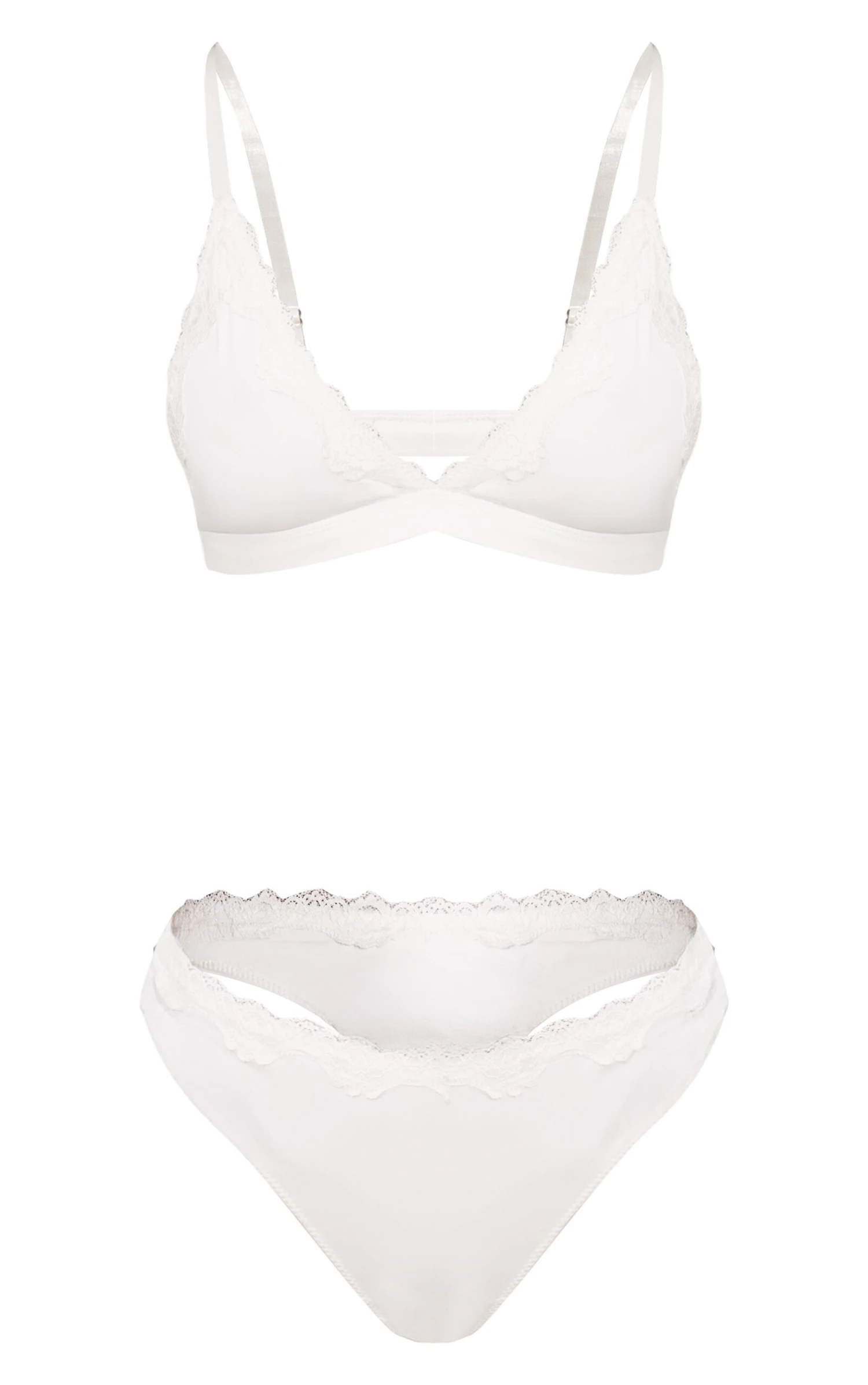 Built for comfort and style, this cream jersey lace trim triangle lingerie set is what you need right now. Brought to you with a matching bra and pants, this set is made from soft cream jersey with lace trims. Wear this under your go-to outfit for ultimate comfort or at home for cosy nights in.