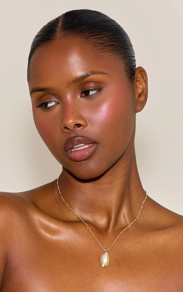 The necklace boasts a warm gold-tone finish that perfectly complements the cream-colored pendant. Crafted with sustainability in mind, it utilizes high-quality recycled metals to ensure you look good while making an eco-conscious choice.