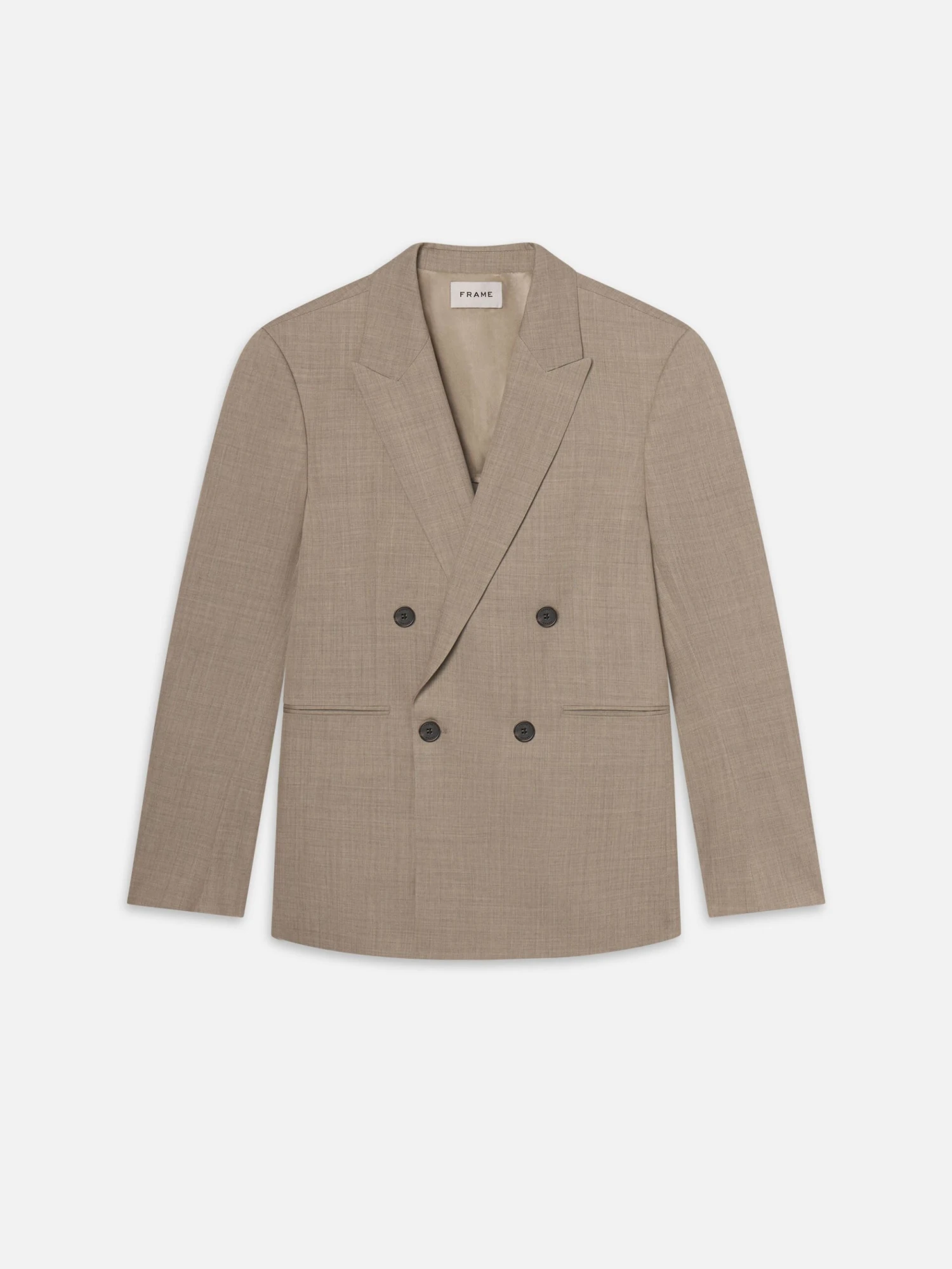 Elevate your formal attire with this sharp double-breasted blazer, meticulously tailored from premium wool with a soft drape. Finished in Vintage Khakiβa muted, modern neutralβthis piece offers a fresh alternative to traditional suiting, perfect for transitioning from office hours to evening events.