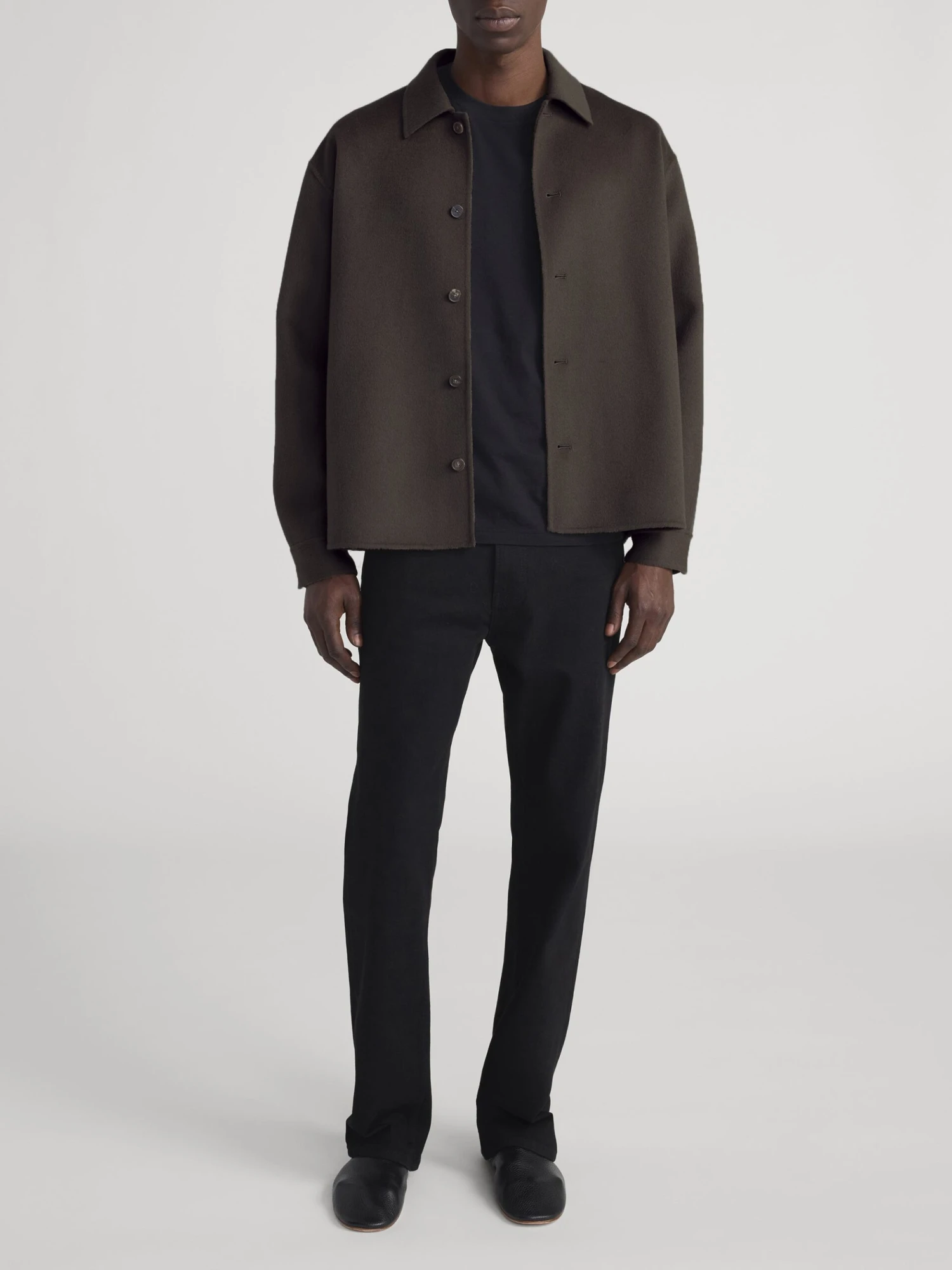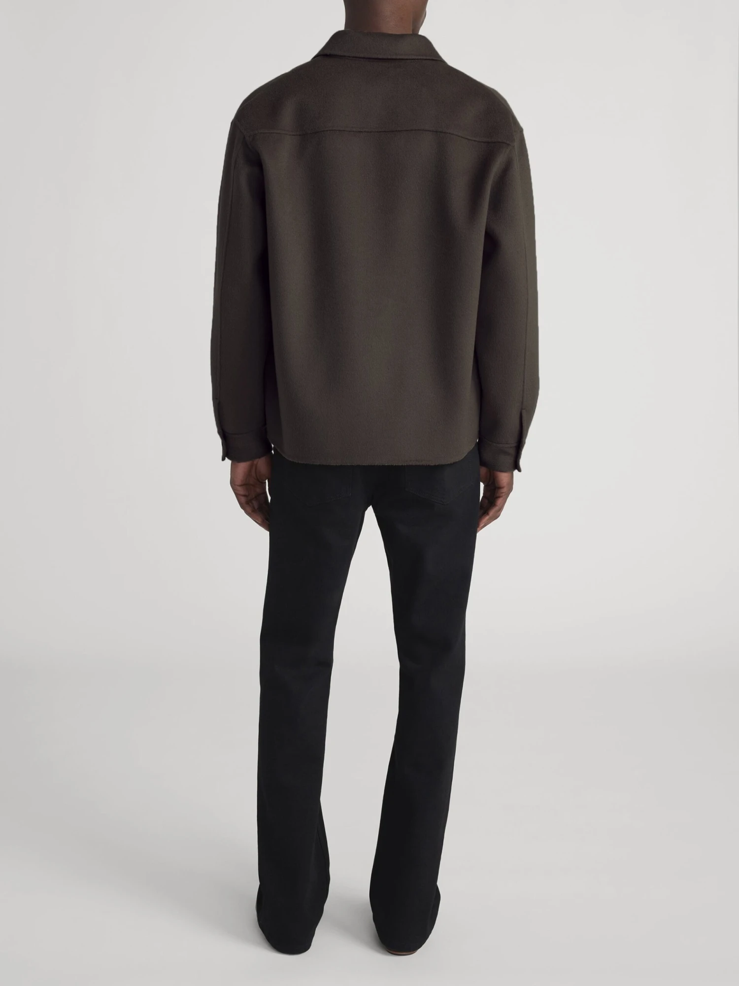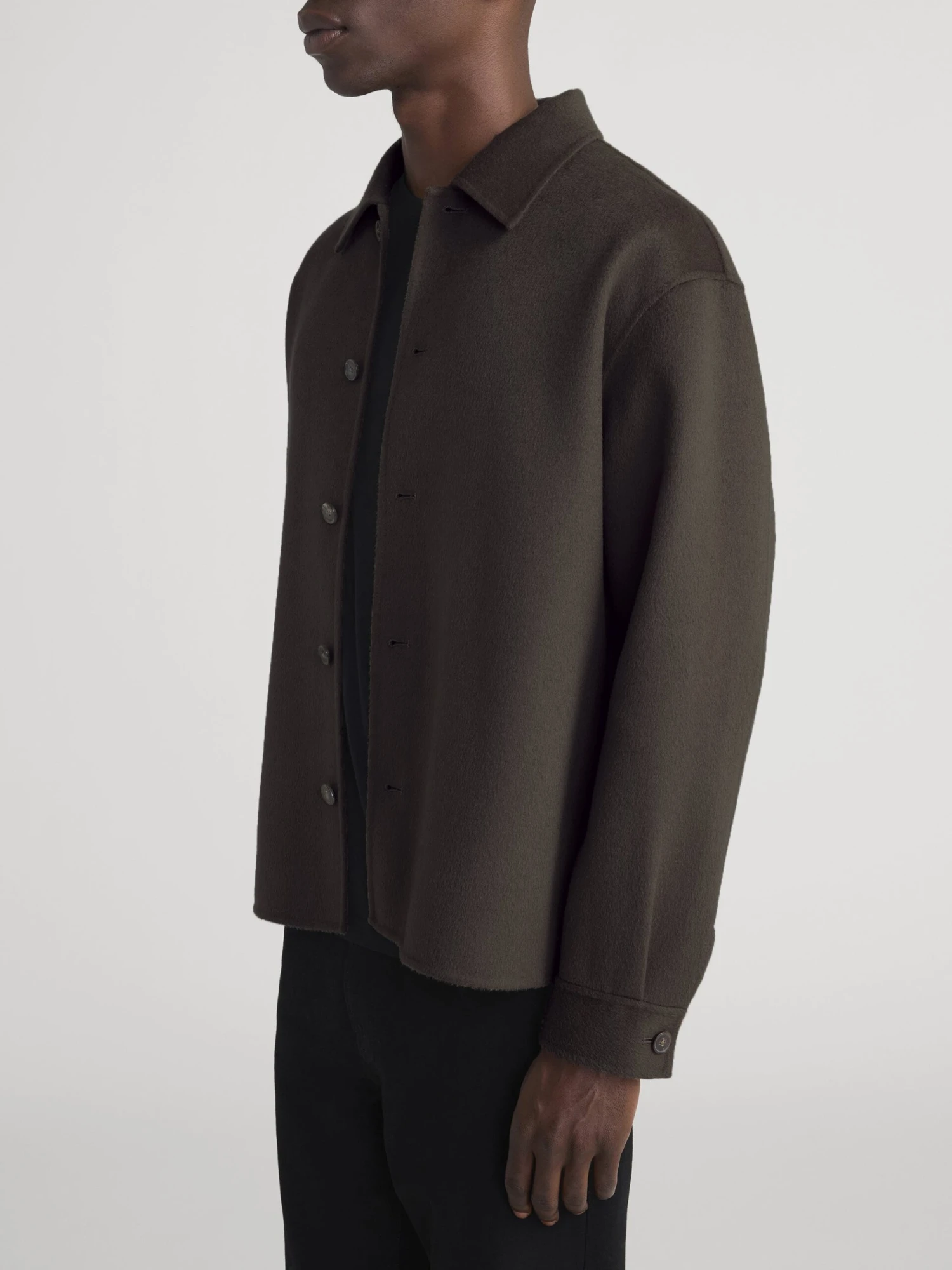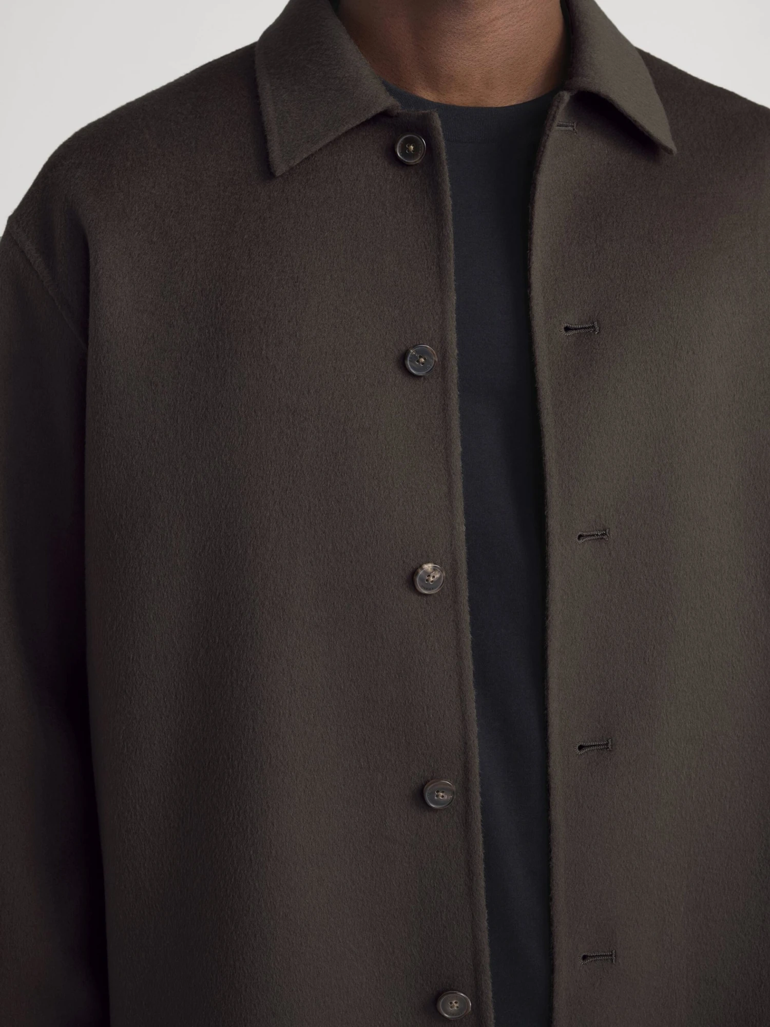 This polished shirt jacket is woven from two layers of wool to ensure an identical look and feel on the inside and outside. The result is a warm, refined layer with dropped-shoulder sleeves and monochrome ease.Â