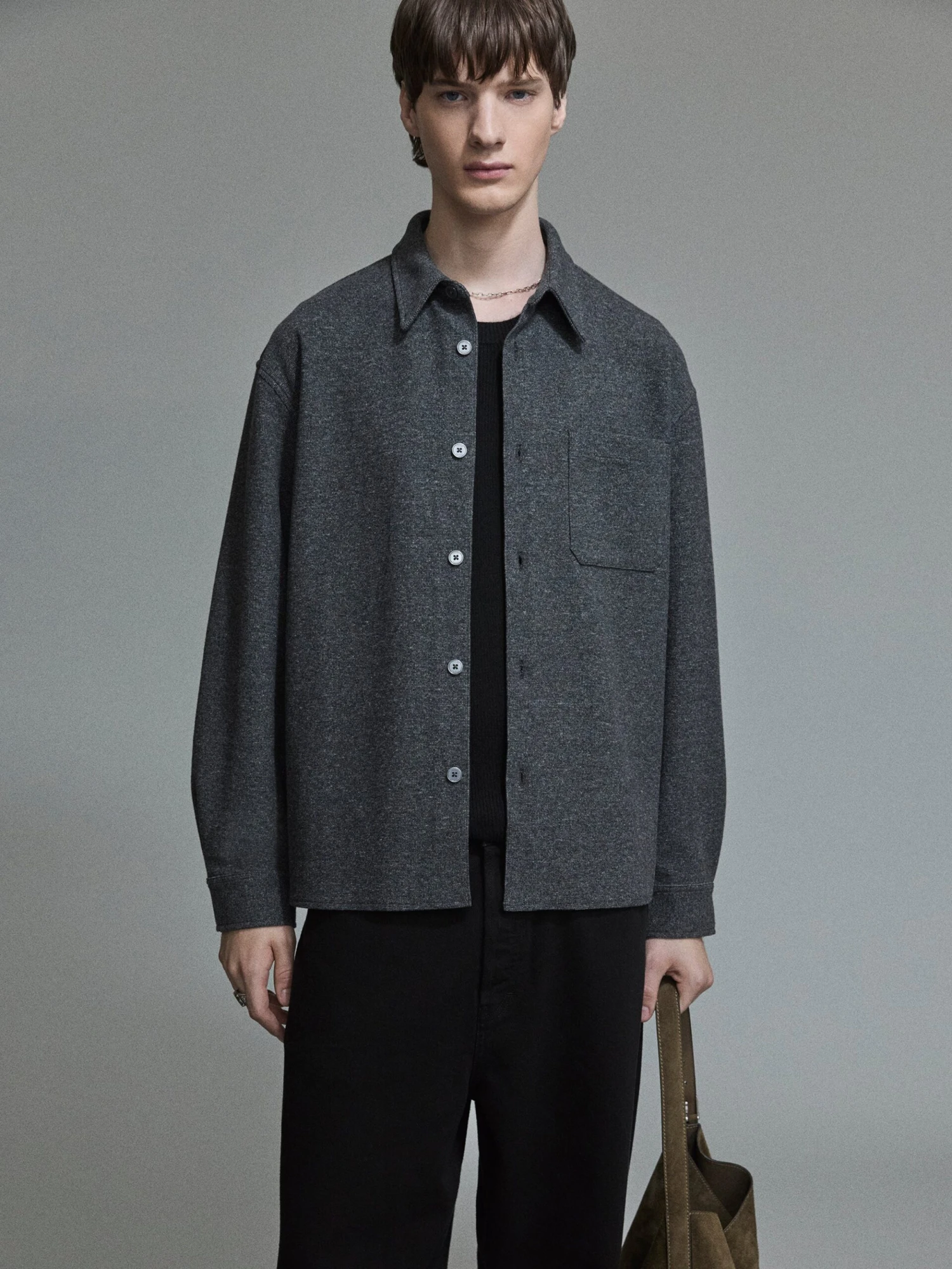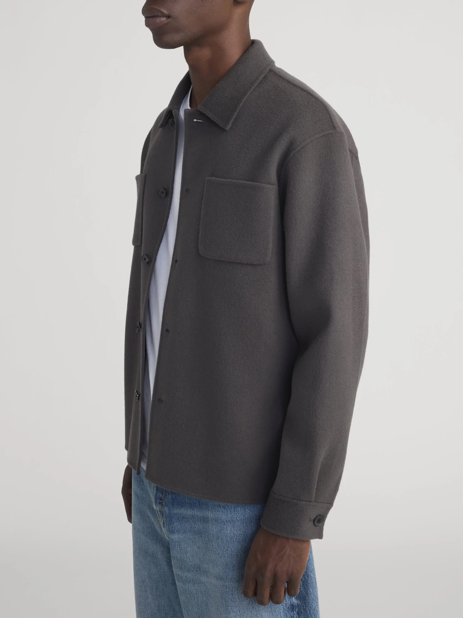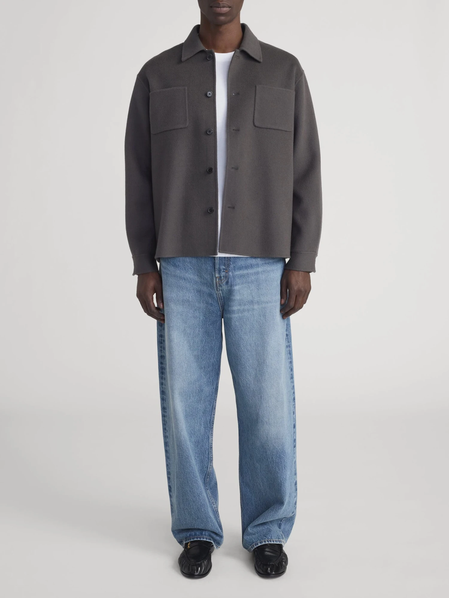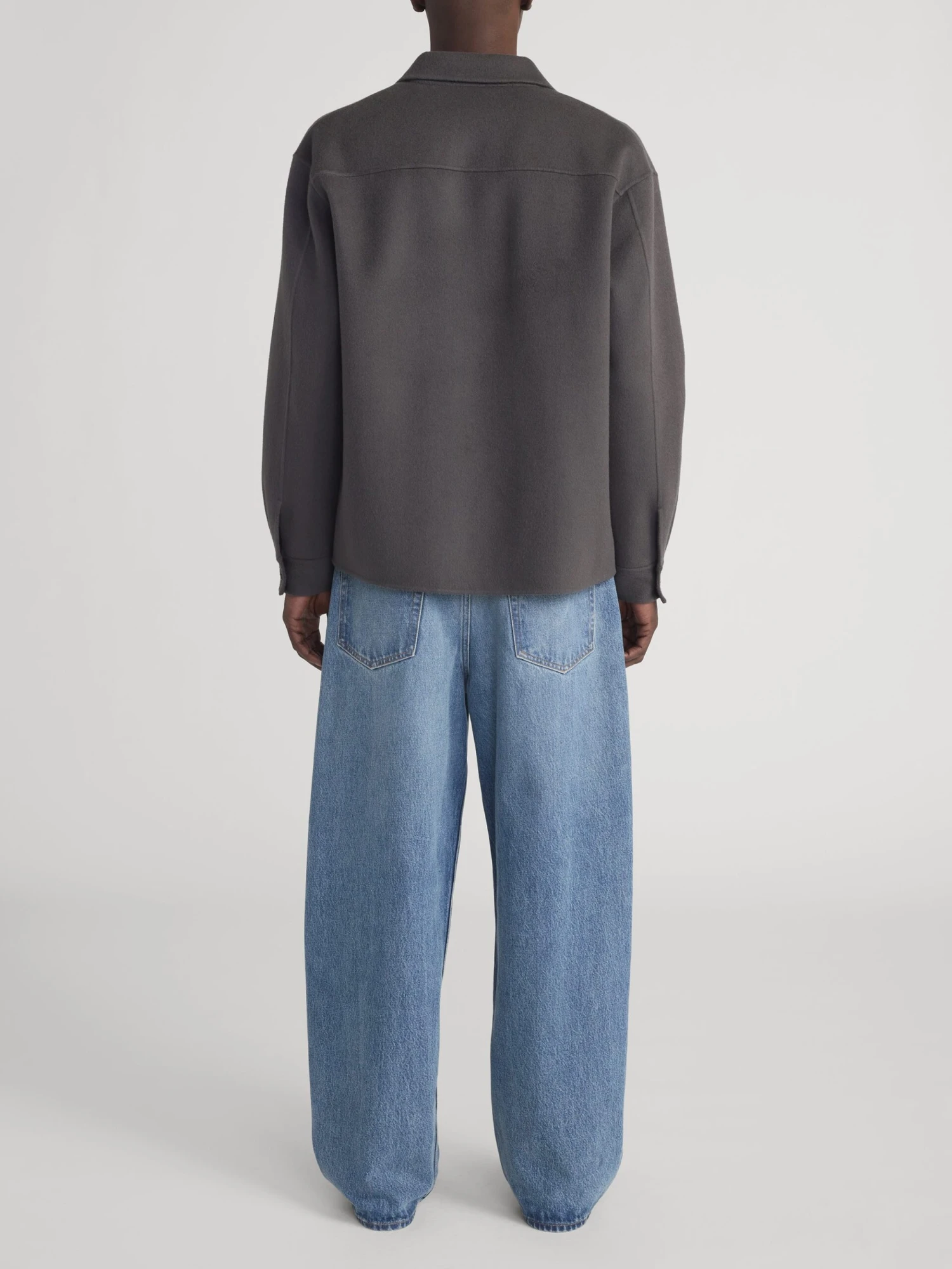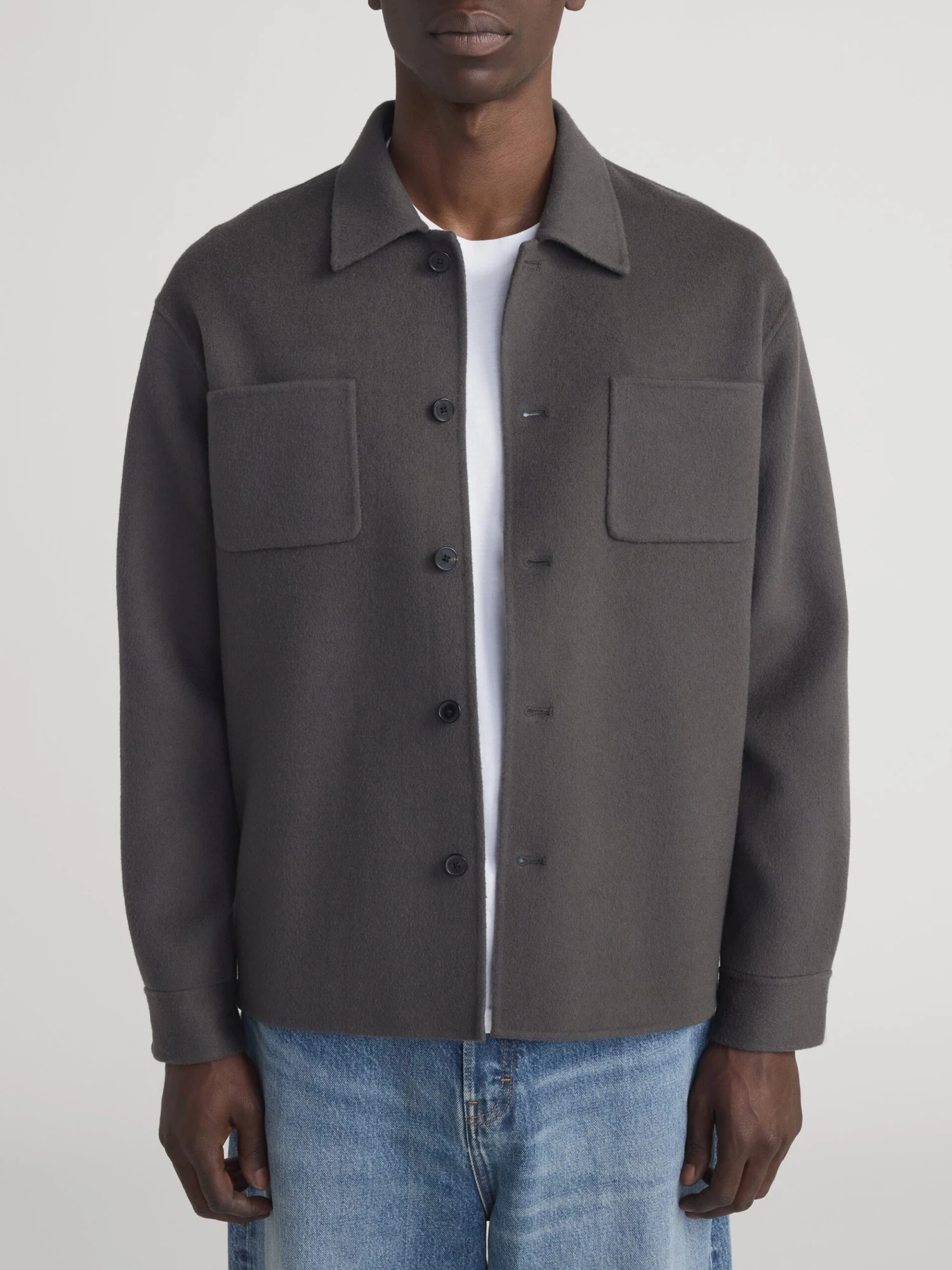 This polished jacket is woven from two layers of wool to ensure an identical look and feel on the inside and outside. A modern and refined take on the classic trucker jacket.