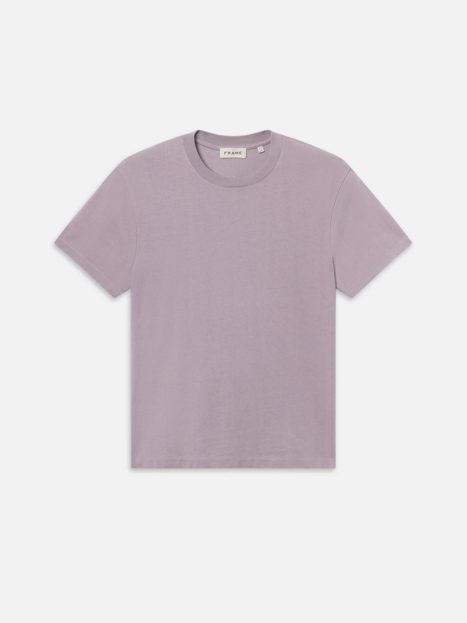 This piece is presented in a sophisticated ‘Old Lavender’ muted purple tone. It features a traditional crewneck neckline and a clean front profile, accented by a meticulously embroidered logo on the upper back for a signature finishing touch.