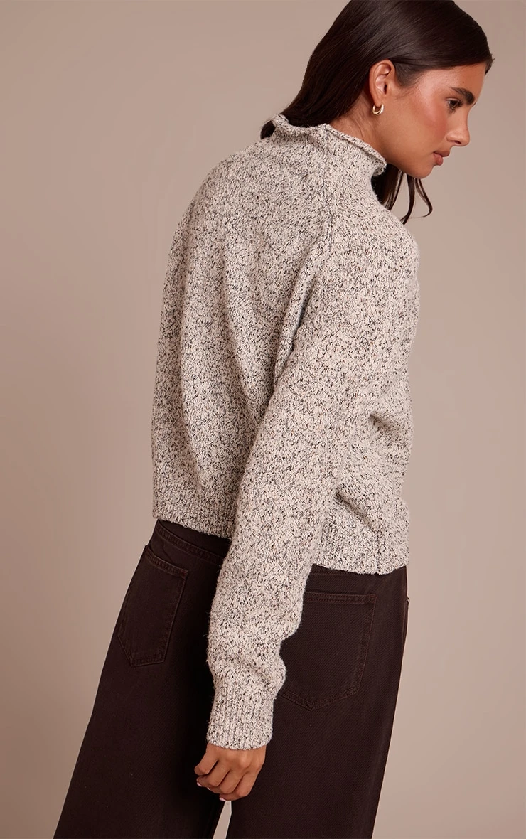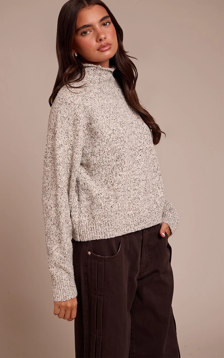 The grey marl relaxed long sleeve sweater offers understated ease with a modern touch. Crafted in a soft grey marl, its relaxed fit makes it a perfect layering staple. Pair with wide-leg jeans and Sneakers for everyday wear, or with a satin skirt and boots for casual refinement.