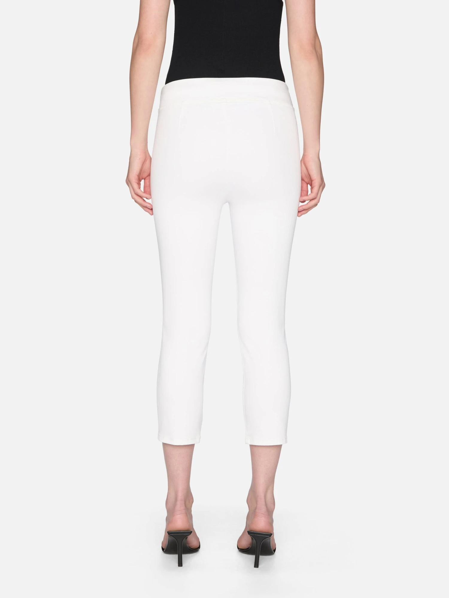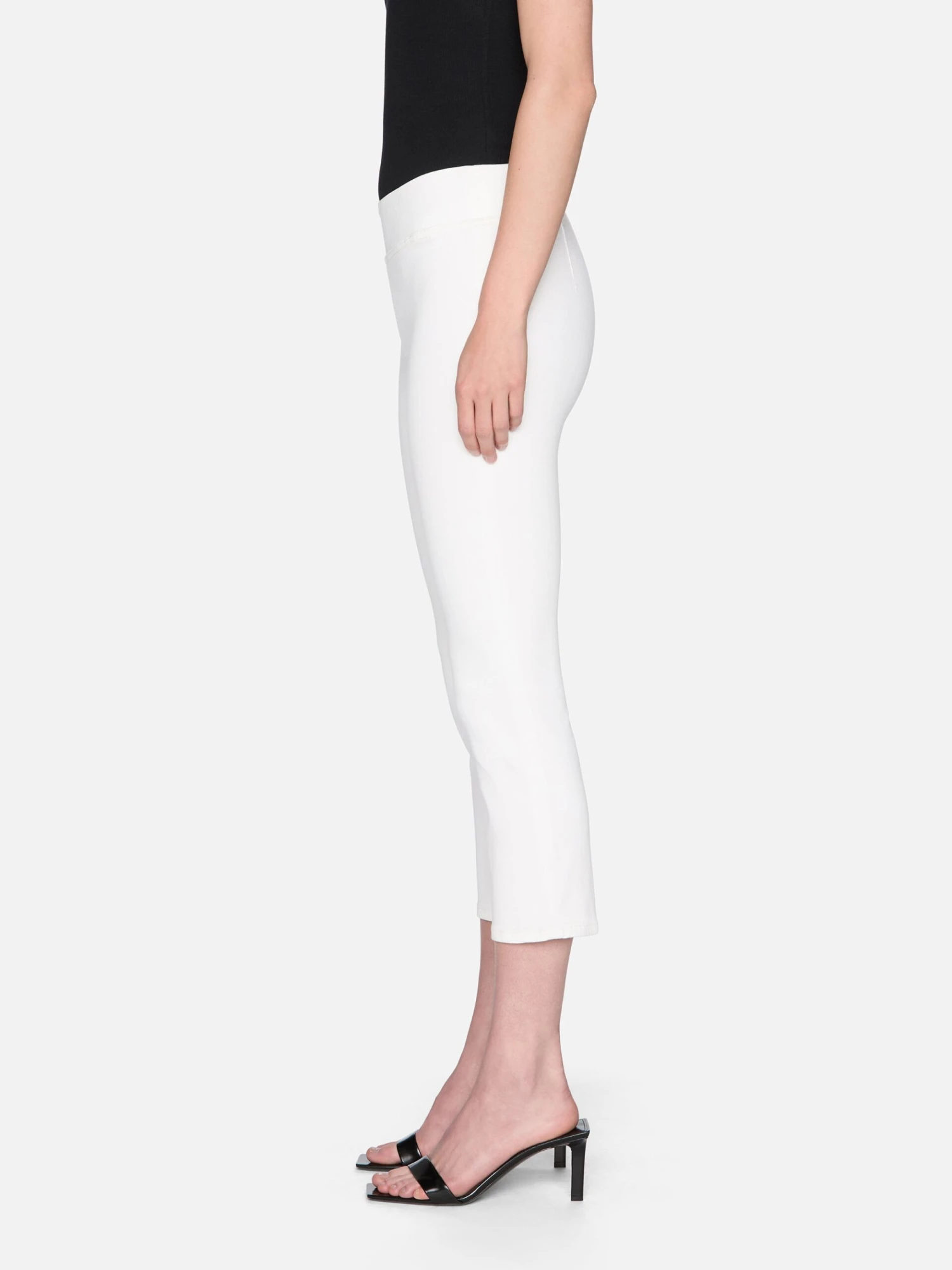 Designed without hardware or pockets, this white capri offers a smooth, uninterrupted fit—ideal for travel days and beyond. The mid-calf silhouette hits at the most flattering point of the leg, pairing effortlessly with off-duty sandals or a kitten heel on office days. Our Jetset denim comes in three sizes—0, 1, and 2—for flawless fit. If you typically wear size 22 to 24, select size 0. If you typically wear size 25 to 29, size 1 will be your best fit. If you typically wear size 30 to 34, choose size 2.Â