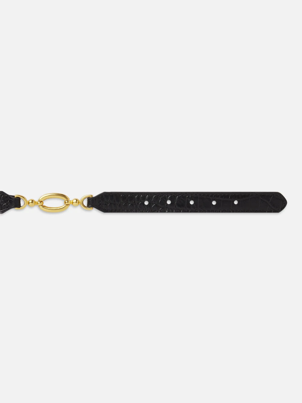This sleek waist belt is crafted from croc-embossed leather, featuring unique gold chain detailing. Instantly elevate your outfit with the Jewelry Detail Belt.