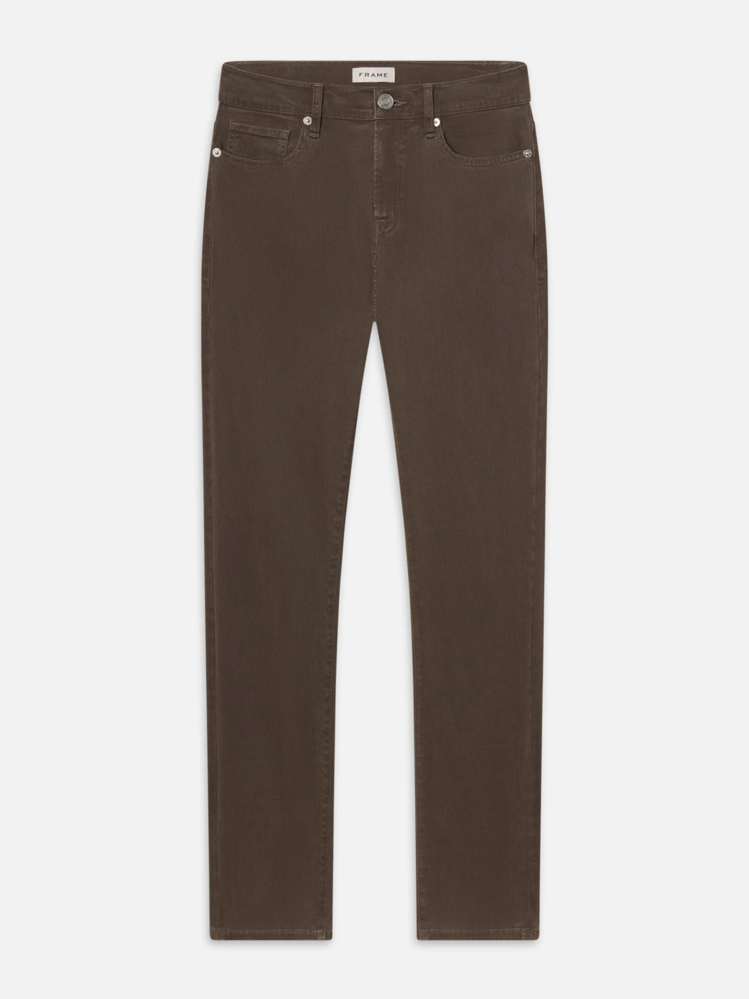 A FRAME signature jean designed with a classic 5-pocket construction, comfortable mid-rise waist, straight leg, and tapered slim fit at the leg opening. Crafted from our best-selling Soft Touch Twill fabrication, offering an ultra-smooth brushed feel.