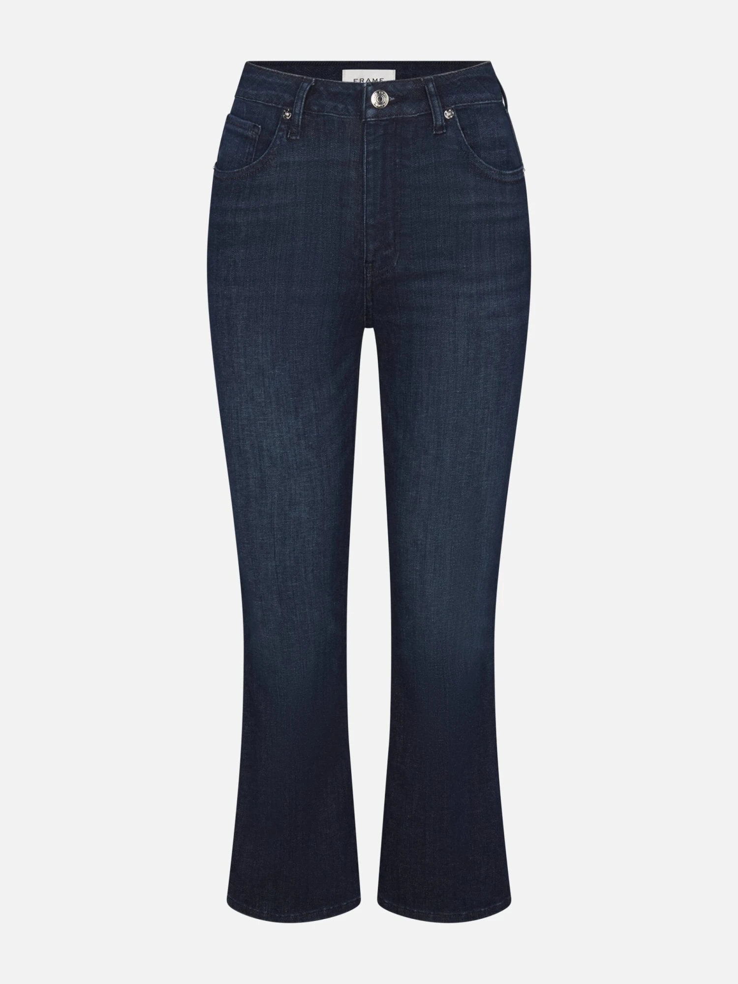 This cropped bootcut silhouette is form-fitting at the top and tapers out from the knee.