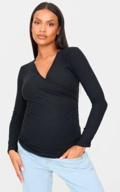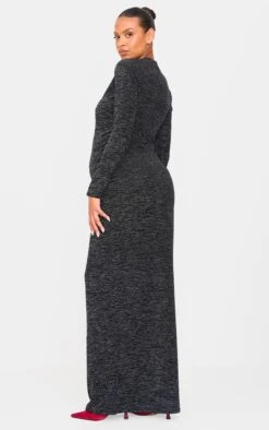 Prettylittlething Maternity Black Glitter Long Sleeve Maxi Dress