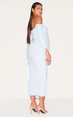 Prettylittlething Maternity Baby Blue Off The Shoulder Contrast Knit Midaxi Dress