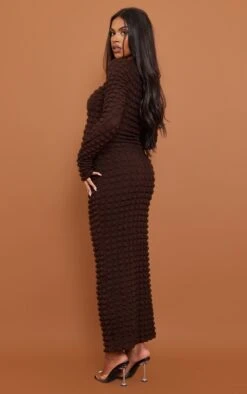 Prettylittlething Maternity Chocolate Brown Textured Bubble Midaxi Dress