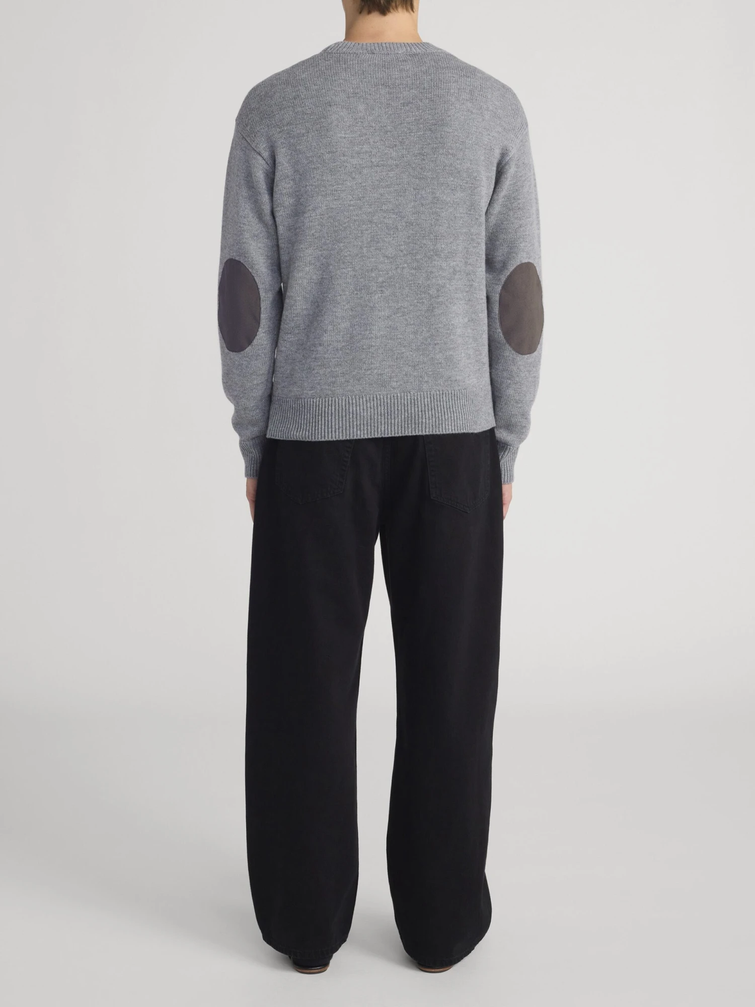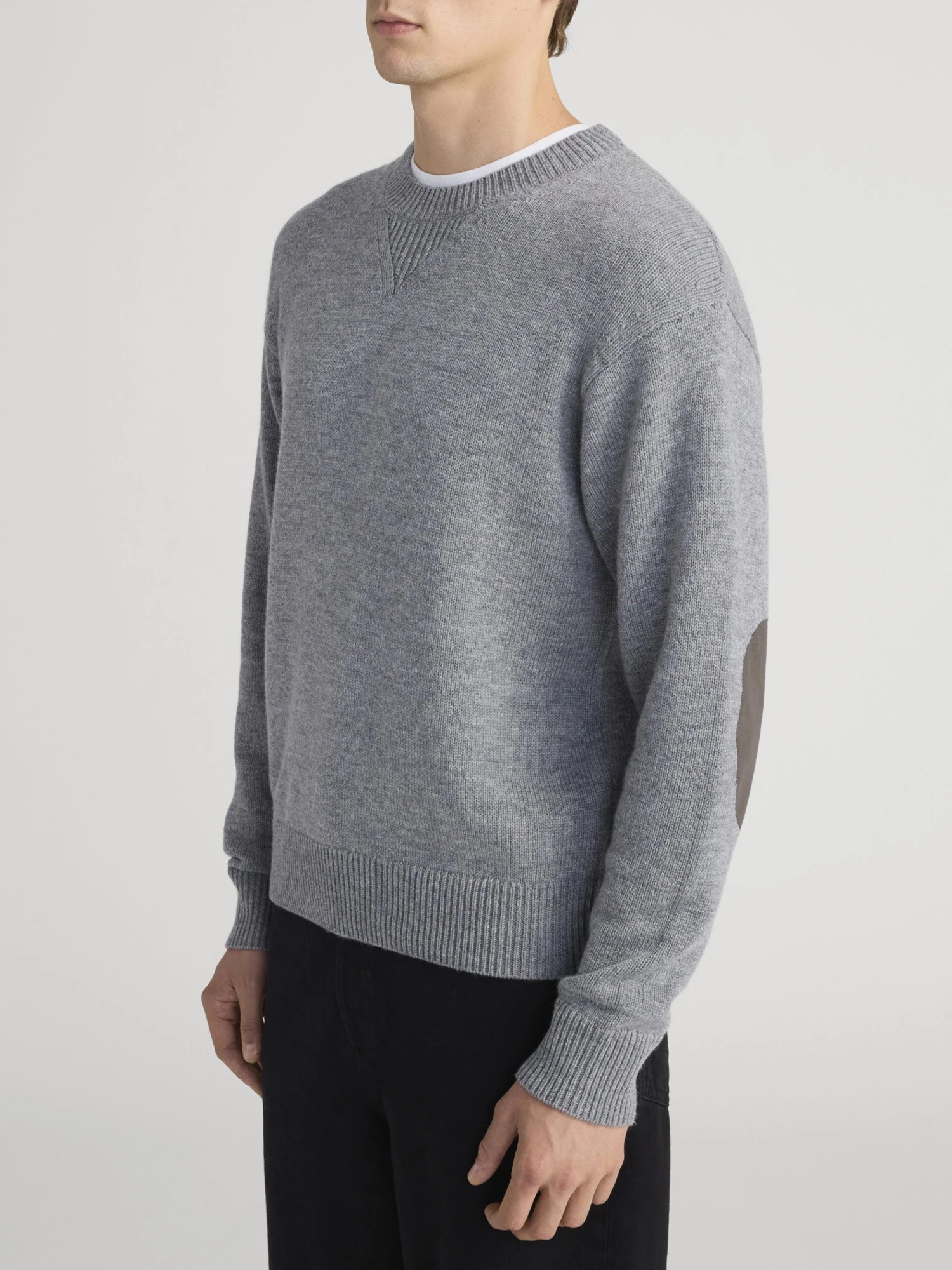 Visual Details: The sweater features a sophisticated Heather Grey hue that provides a versatile base for any outfit. The defining characteristic is the tonal suede patches at the elbow, providing a subtle contrast in texture while adding a touch of heritage-inspired sophistication and reinforced durability.