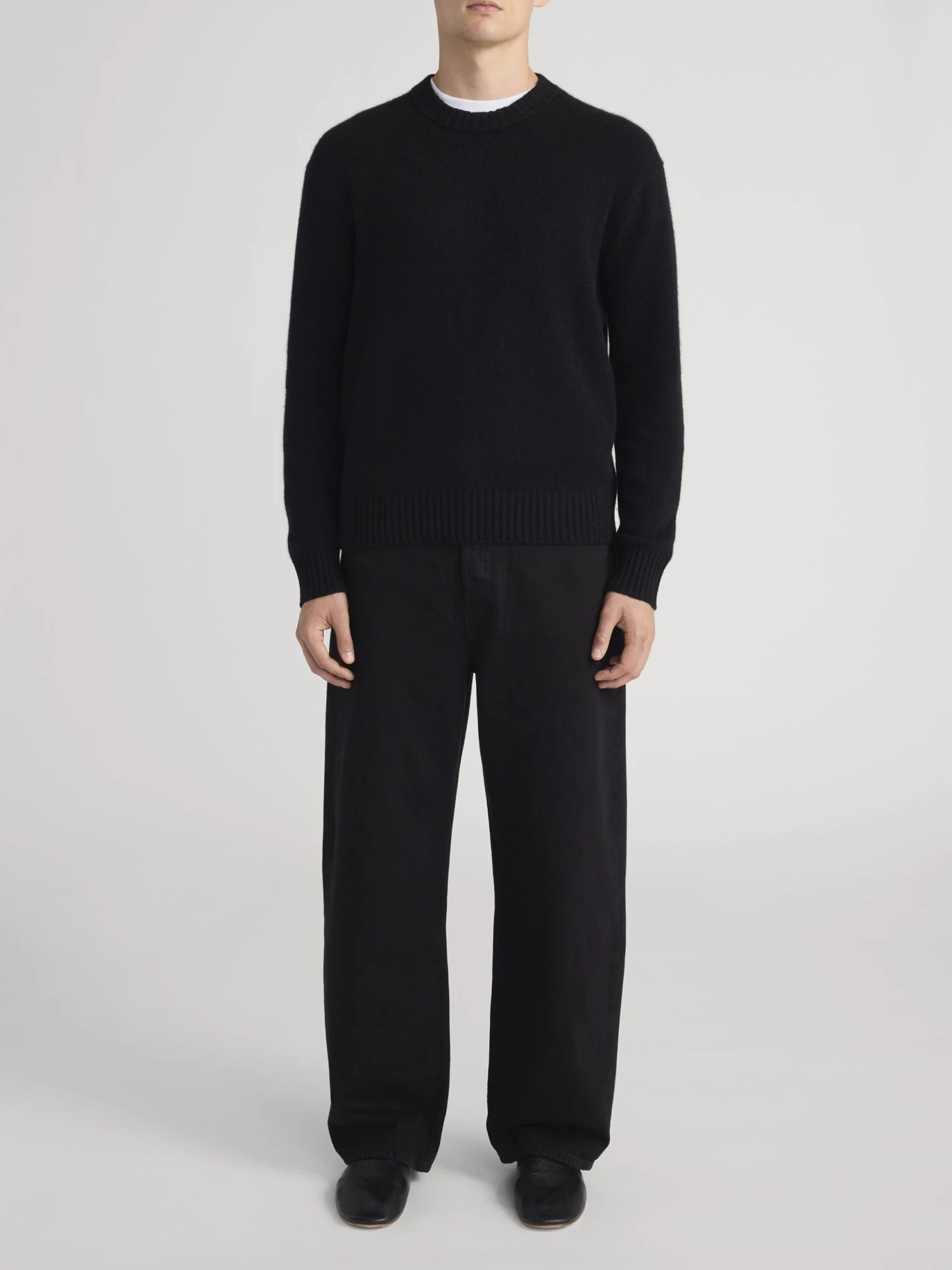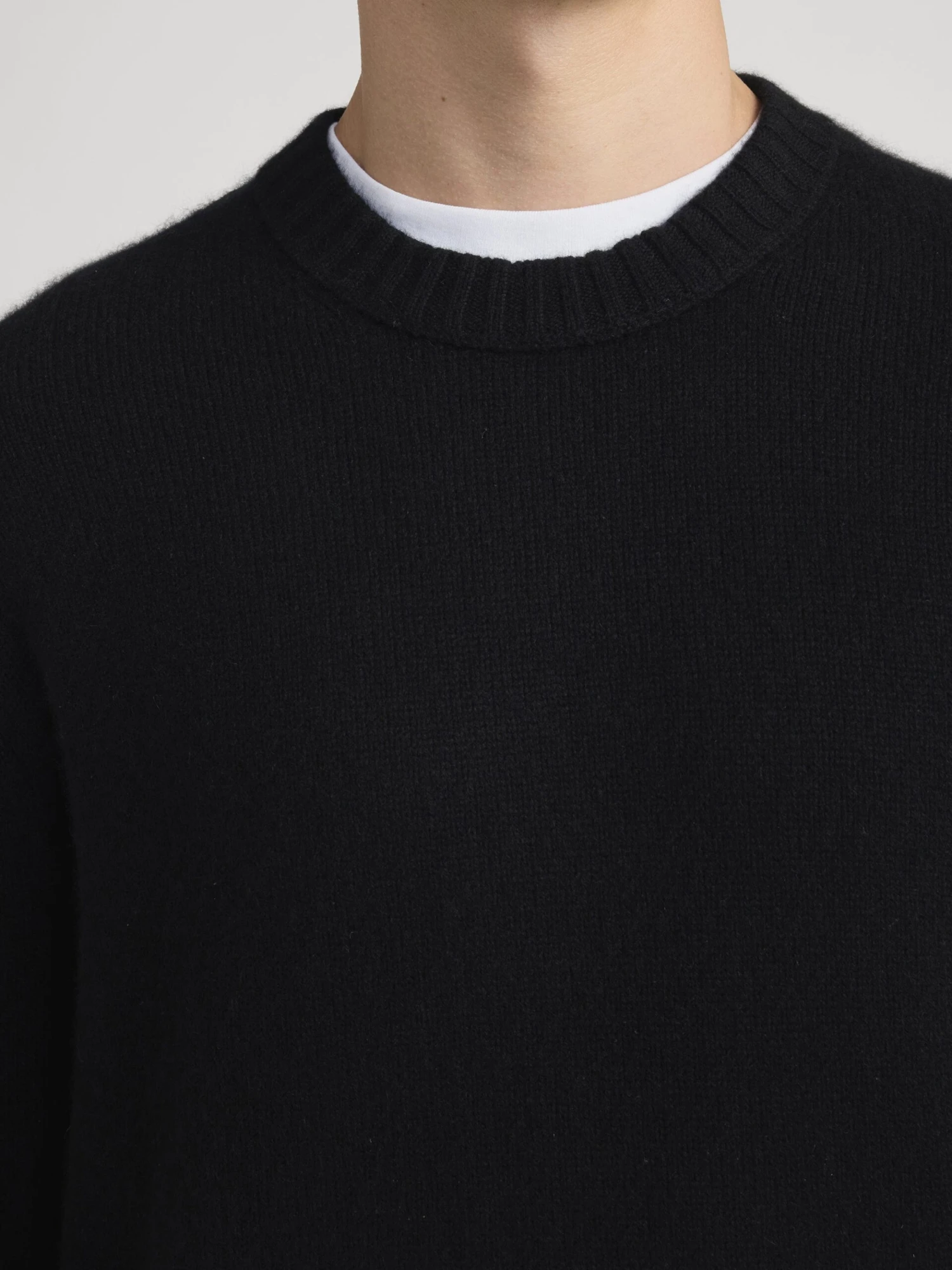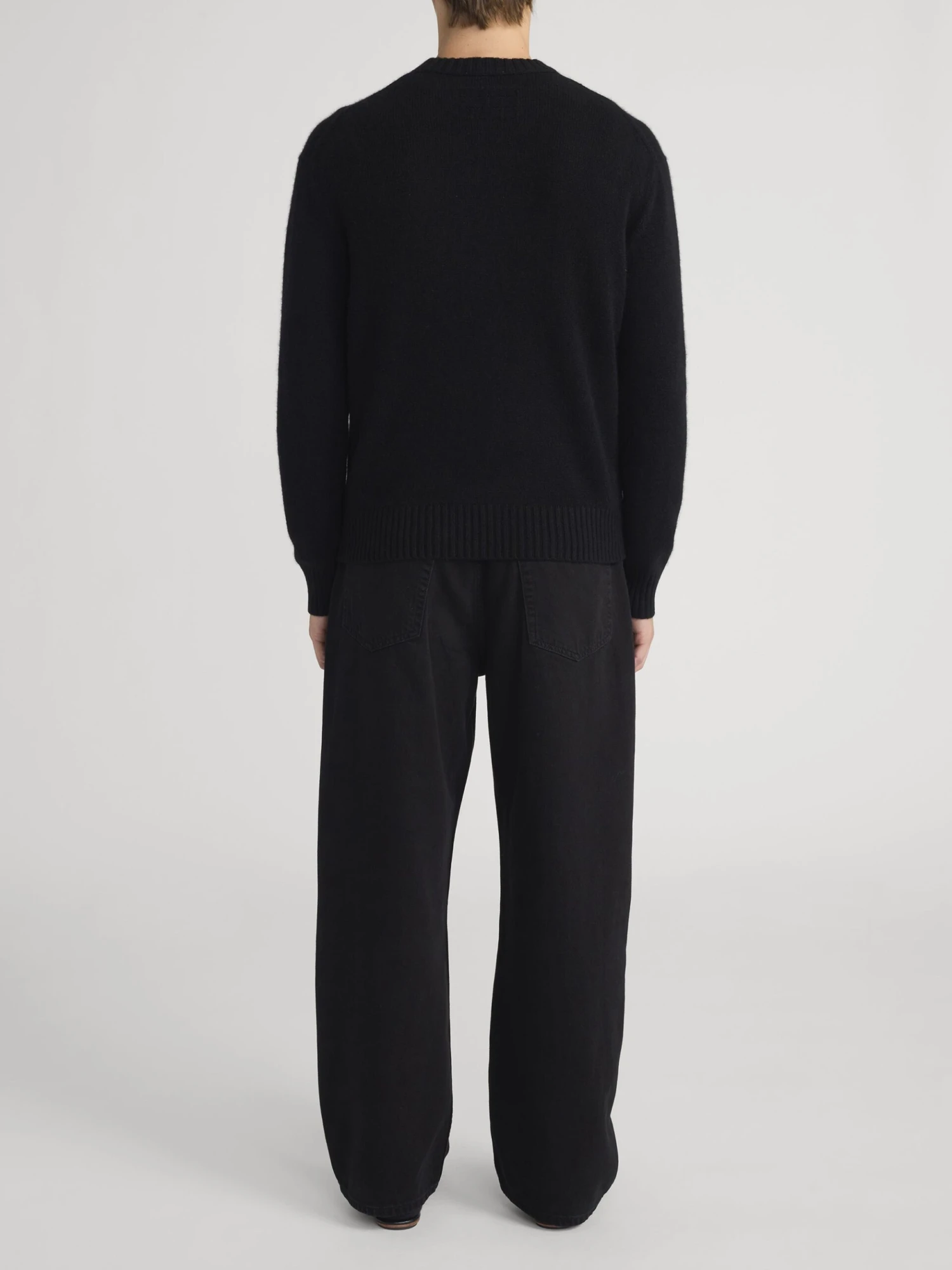 This sweater features a deep, saturated Noir (Black) finish that provides a sophisticated and versatile aesthetic. The refined crewneck collar, ribbed cuffs, and hem provide a structured yet comfortable fit that transitions perfectly from professional office settings to relaxed weekend outings.