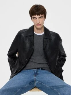Premium Black Lamb Leather Jacket – Tonal Stitchwork with Notched Collar & Flap Pockets
