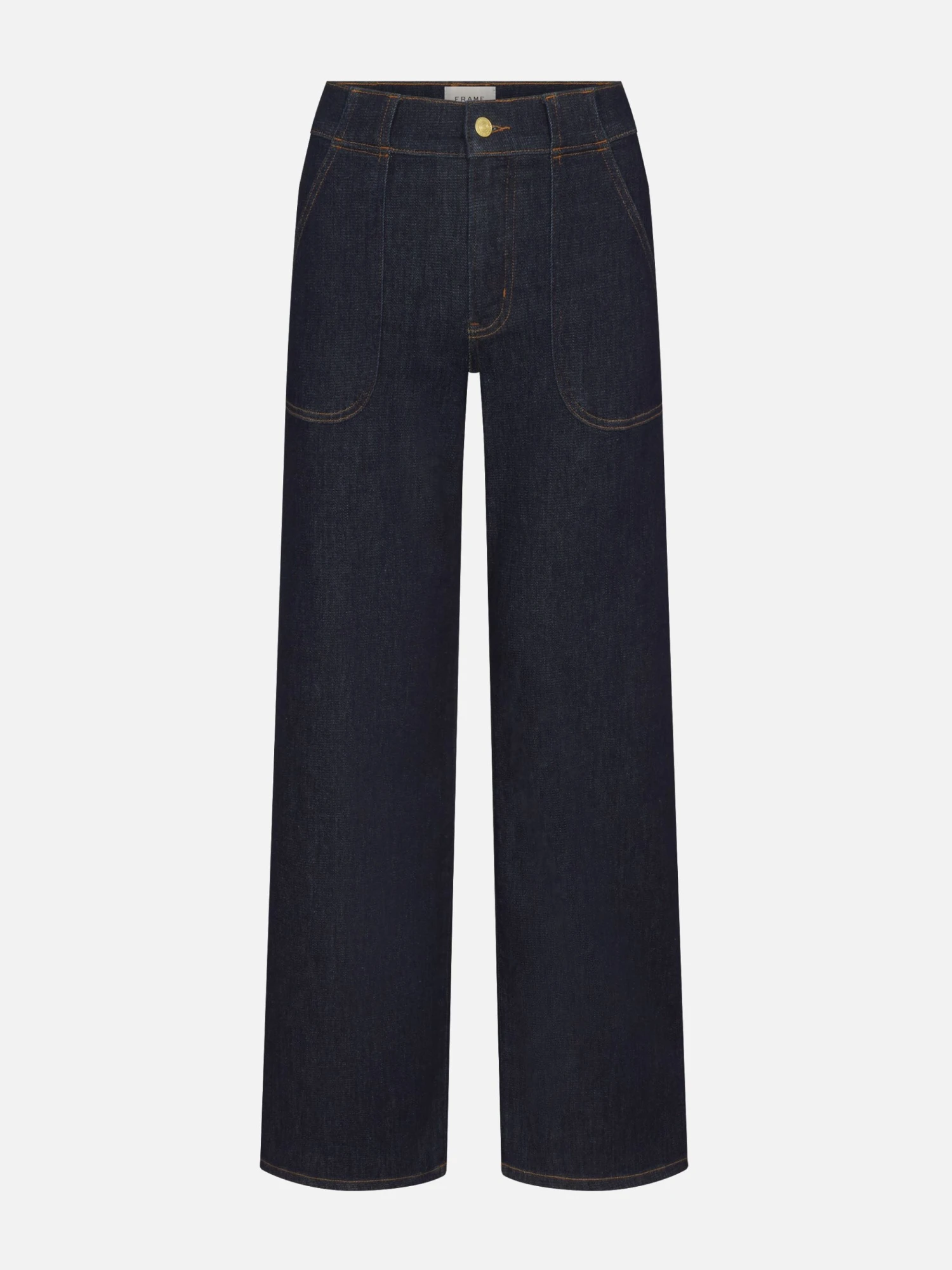 A perfect balance of easy and elevated, this wide-leg fit can be worn all day, any day. Utility-inspired pockets hint at workwear style while super stretchy denim offers extra comfort. Complement the high-rise waist with a leather belt and play up the full-length inseam with platform clogs.