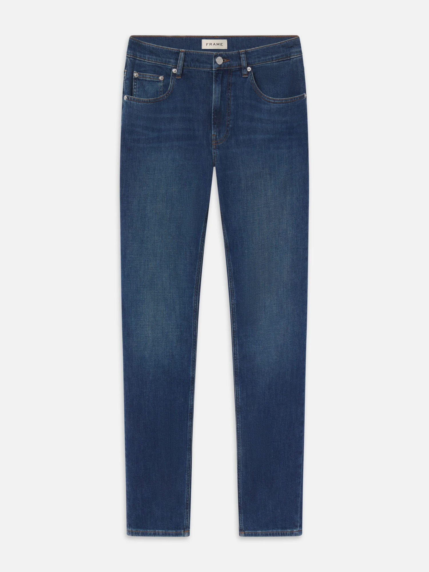 Our mid-rise, straight-leg silhouette is cut from a stretch-cotton denim. This 5-pocket pair easily achieves a smart, casual look in any wash.