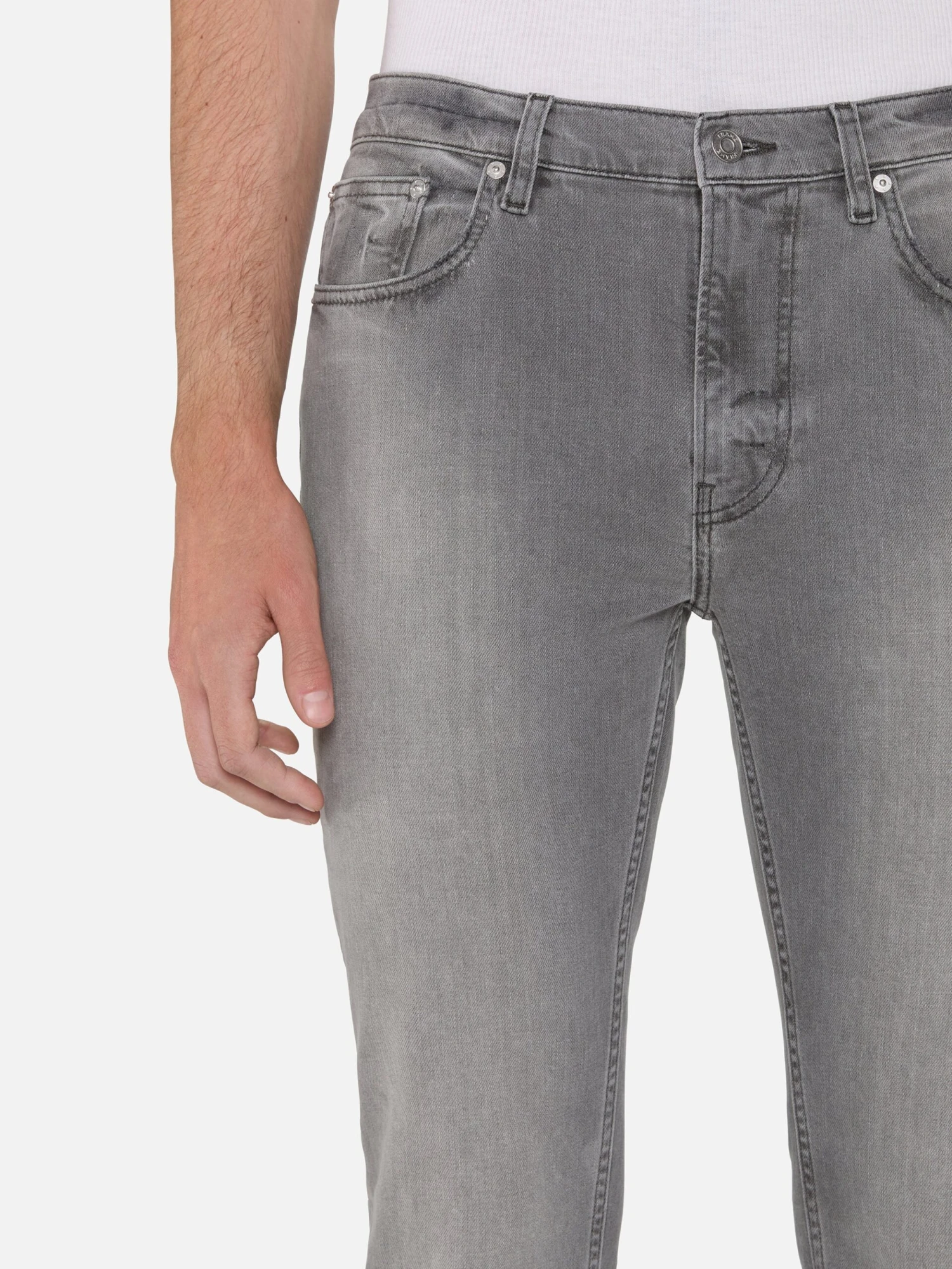 Our mid-rise, straight-leg silhouette is cut from a stretch-cotton denim. This 5-pocket pair easily achieves a smart, casual look in any wash.