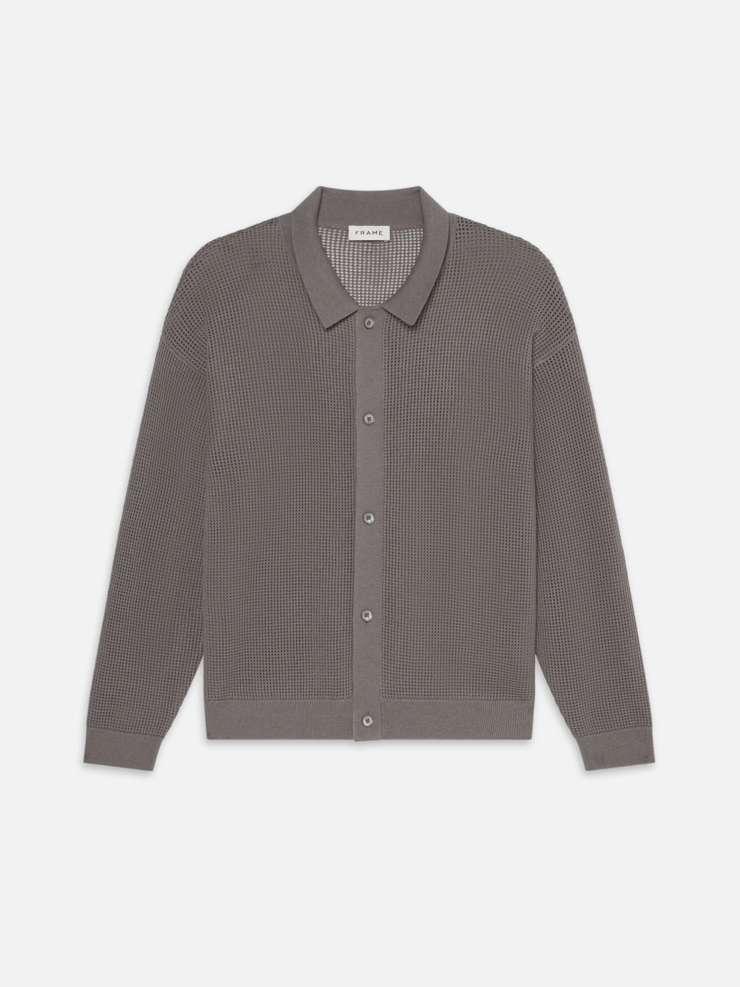 This cardigan features a premium open-knit construction that allows for natural ventilation, making it the perfect year-round layer. The Cloud Grey hue offers a versatile, high-end look that pairs effortlessly with both casual and tailored attire.