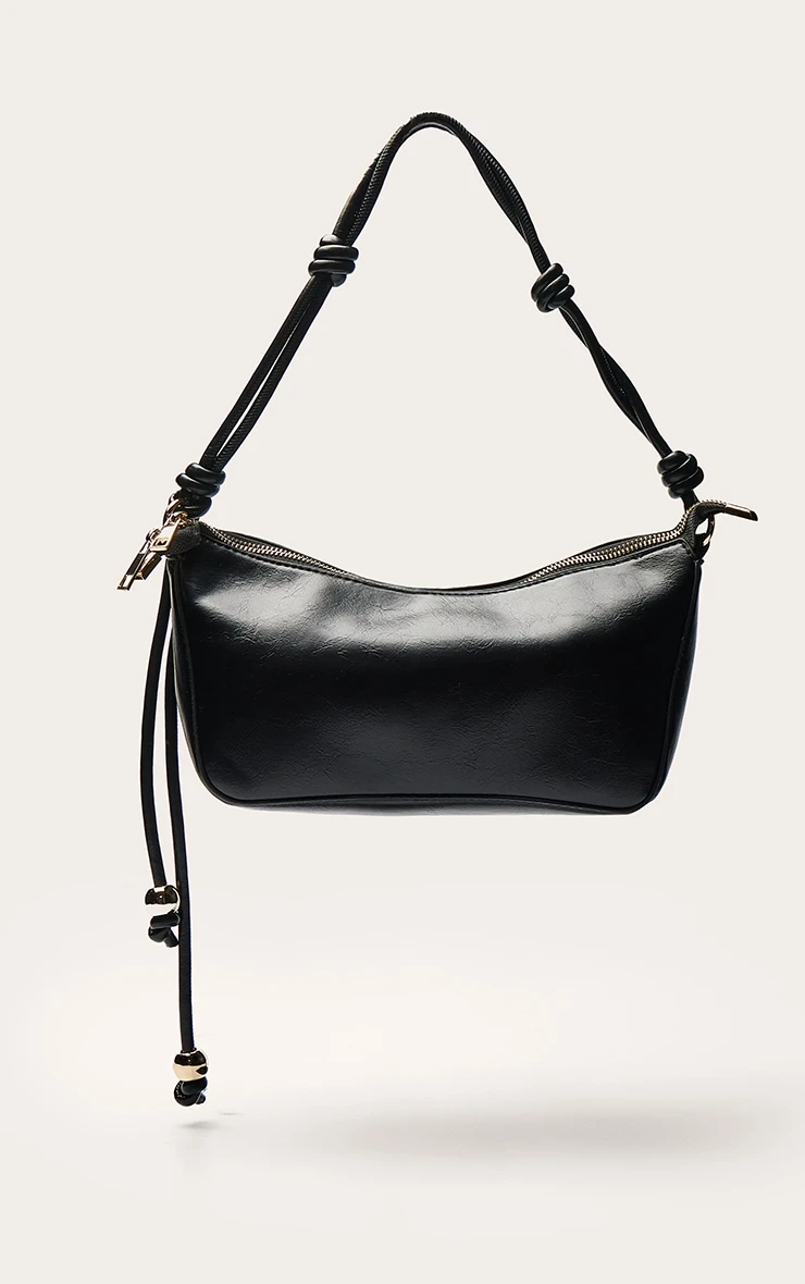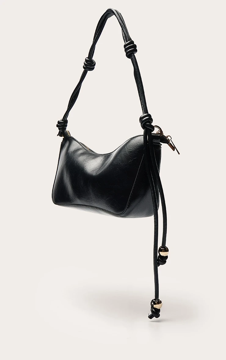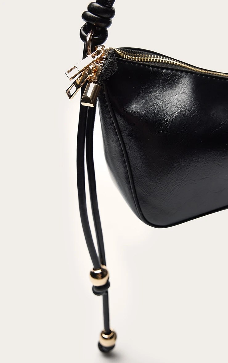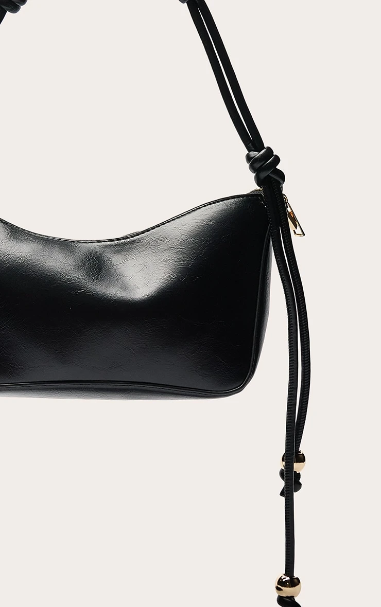 Introducing the black bead knotted handle shoulder bag. Made from black material, this bag has knot detailing at the strap, gold bead detailing and gold hardware with a zip fastening. Curate your look by pairing this with a basic white Vest, wide leg pants and complementing ballet flats.