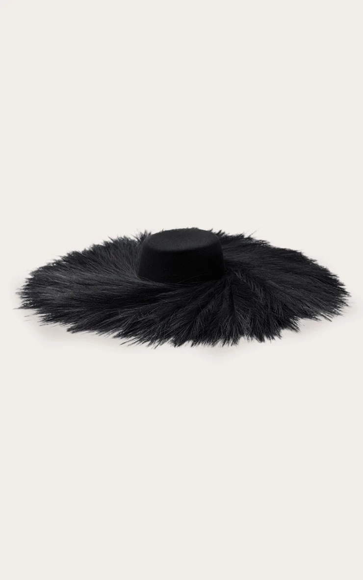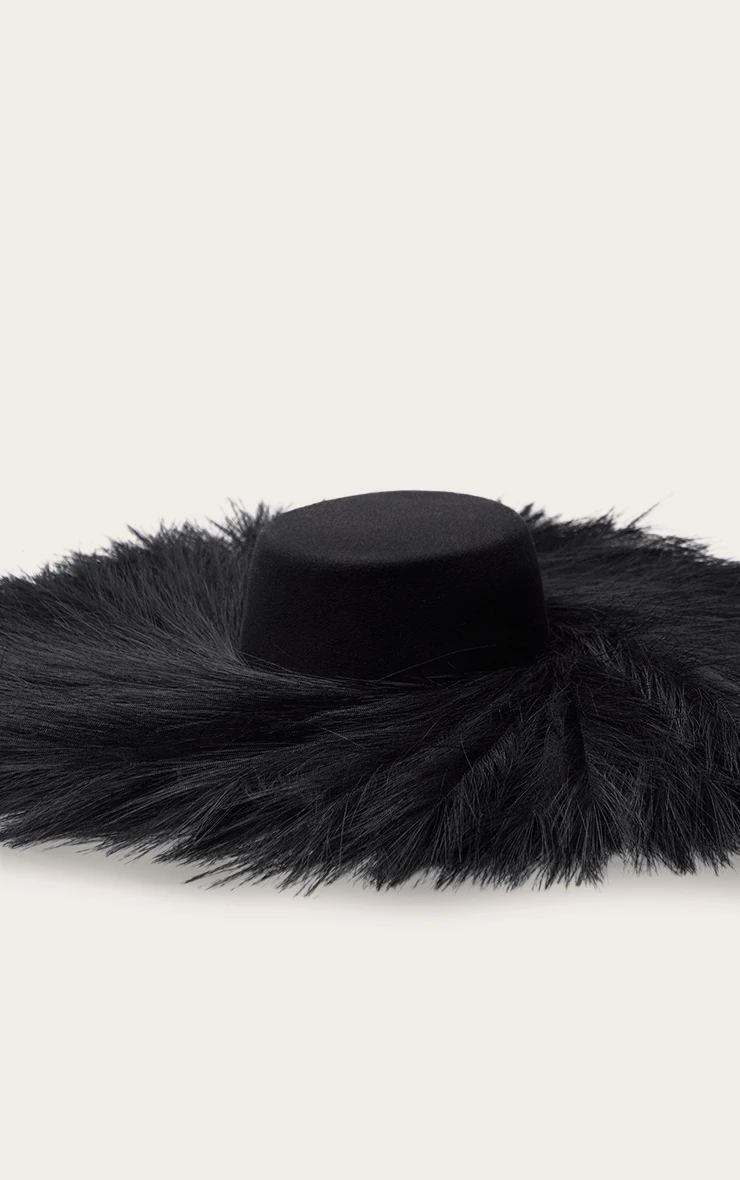 The black feather trim fedora is a timeless accessory with a playful twist. Finished with a feathered edge, it balances sophistication with statement style. Pair with tailored coats or dresses for a striking final touch.