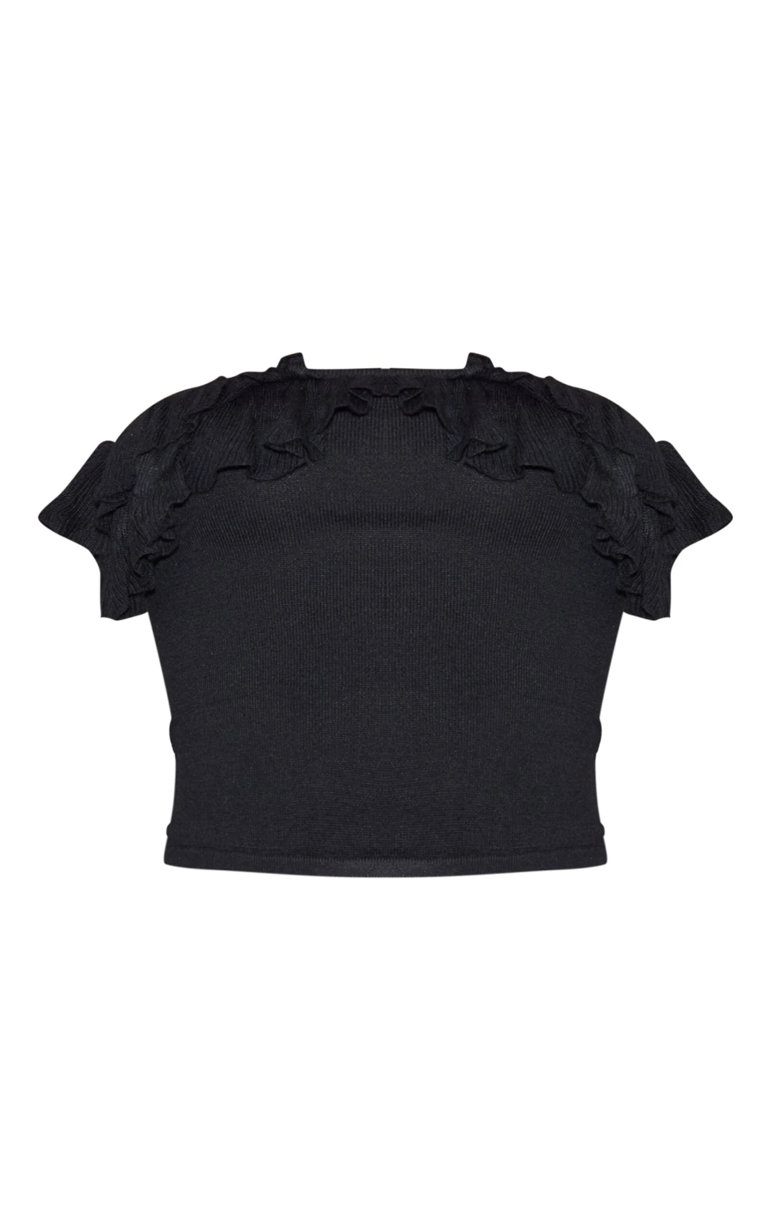 Introducing the black fine knit bandeau frill top, a sophisticated twist on a classic neckline. Crafted from fine knit fabric with a bandeau neckline and delicate frill detailing for a feminine and flattering silhouette. This top is perfect for both casual and dressy occasions. Pair with a skirt and heels to complete the look.