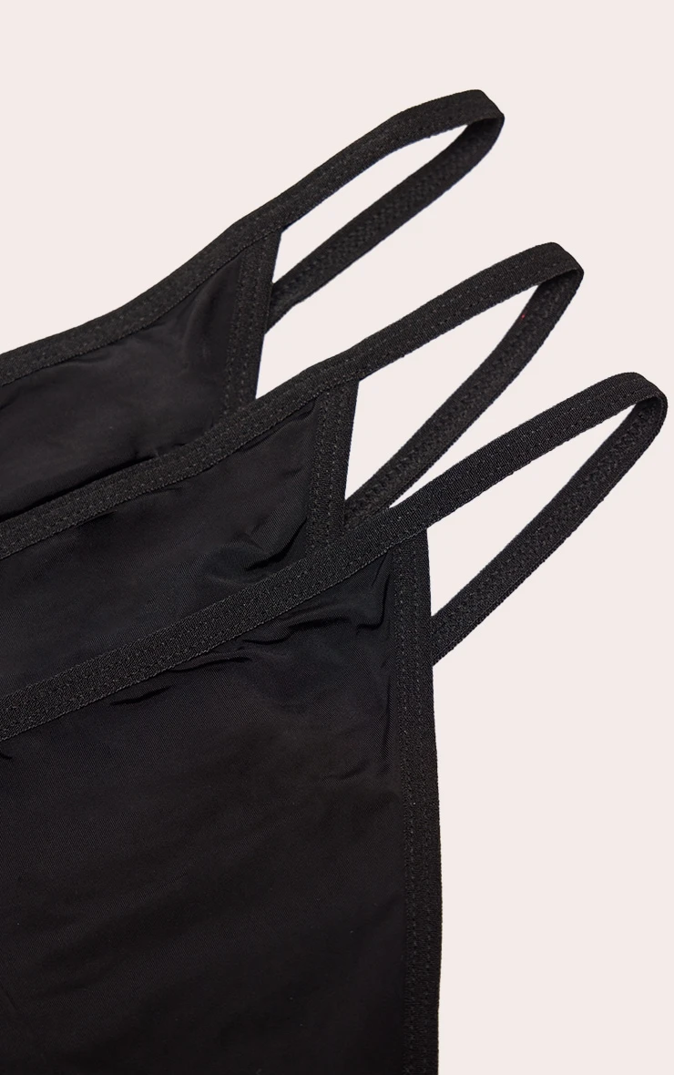 Consider this your foundation. Crafted from smooth black microfibre, this trio of thongs offers an understated approach to everyday dressing. The clean lines and minimalist design ensure seamless layering beneath any ensemble. Consider this the cornerstone of your wardrobe; a quiet statement of considered style. Pair with a tailored pant from our bottoms collection for a confident, modern silhouette.