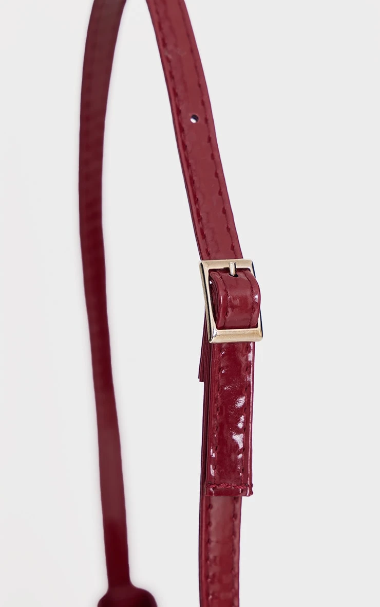 Level up any look with this PrettyLittleThing Burgundy Patent PU Buckle Baguette Shoulder Bag. Crafted from a high-shine burgundy patent PU material, this bag features a signature buckle detail and a sleek baguette silhouette that captures the iconic 90s revival aesthetic. Whether you’re heading to brunch or a night out, this shoulder bag is the perfect finishing touch to your outfit of the day.