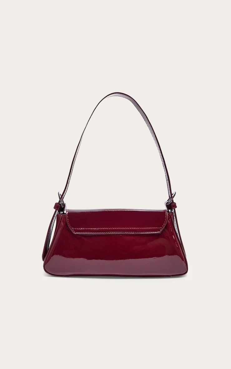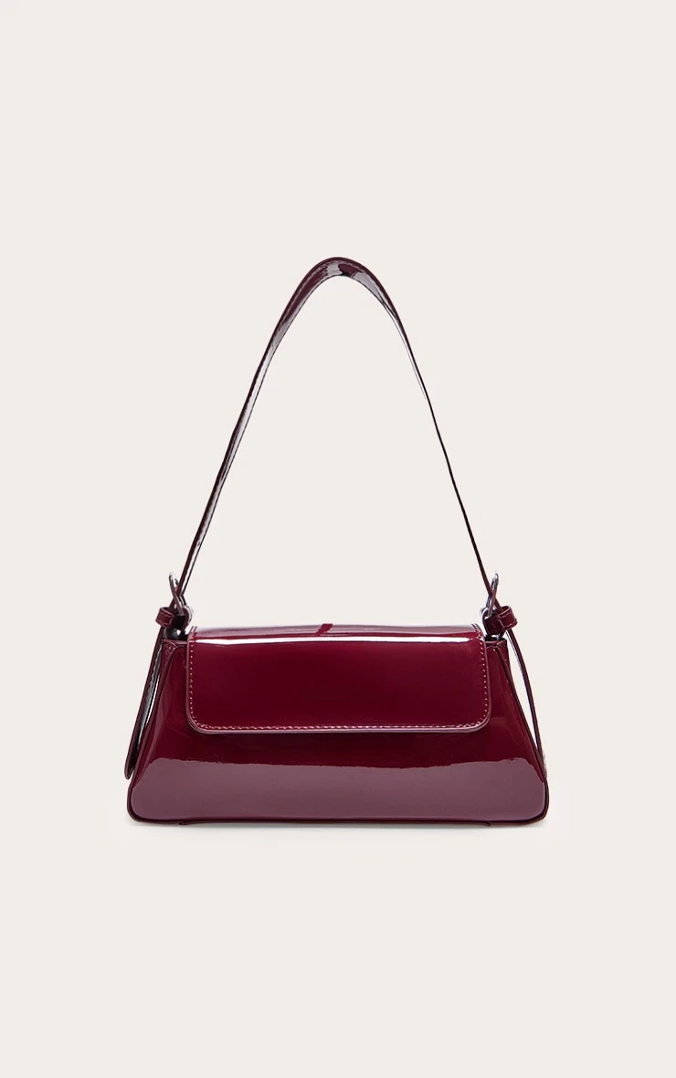 Make a definitive statement this season with the PrettyLittleThing Burgundy Patent Trapeze Shoulder Bag. Designed for the modern trendsetter, this bag combines a rich autumnal burgundy hue with a sharp, geometric silhouette that demands attention and elevates any ensemble.